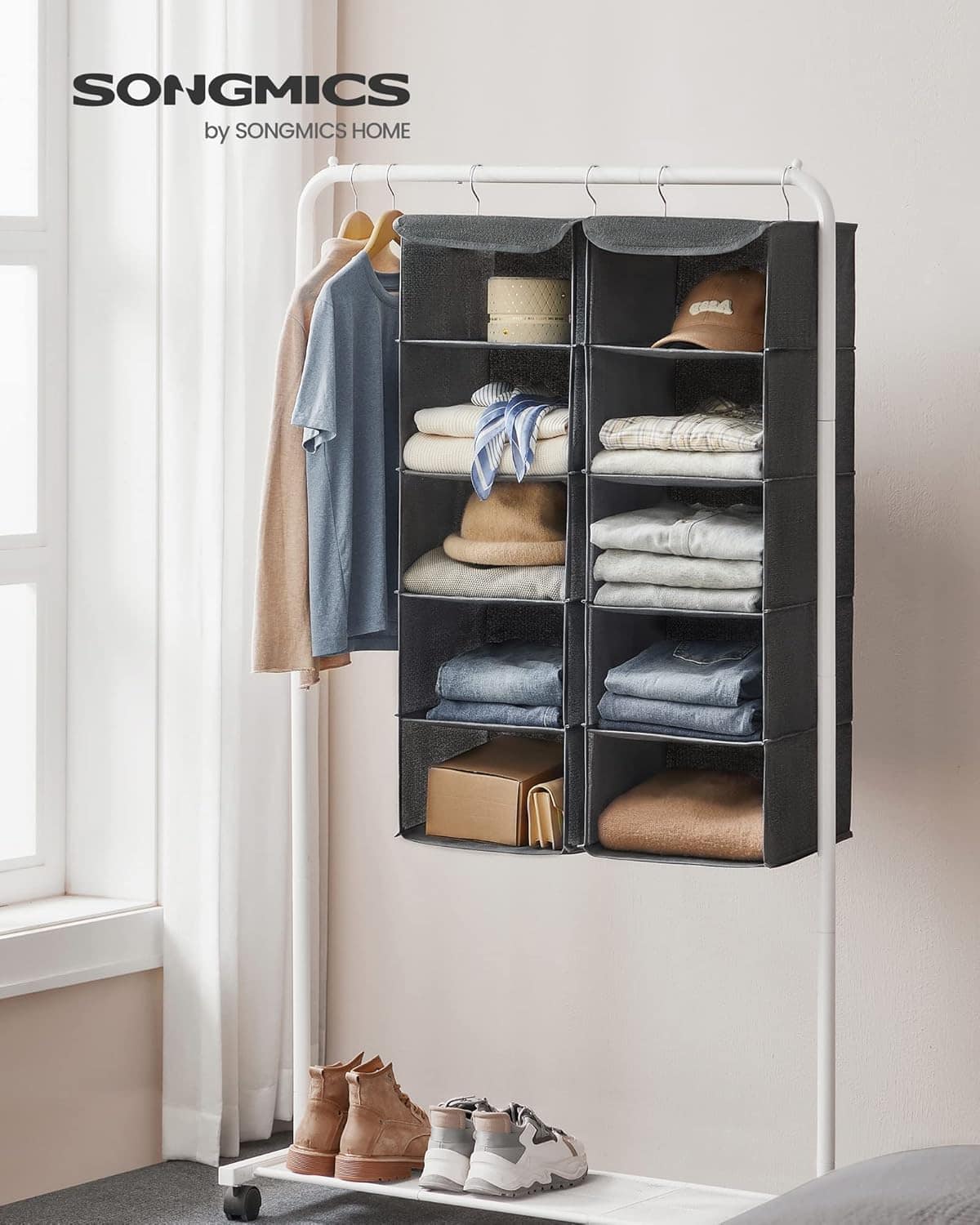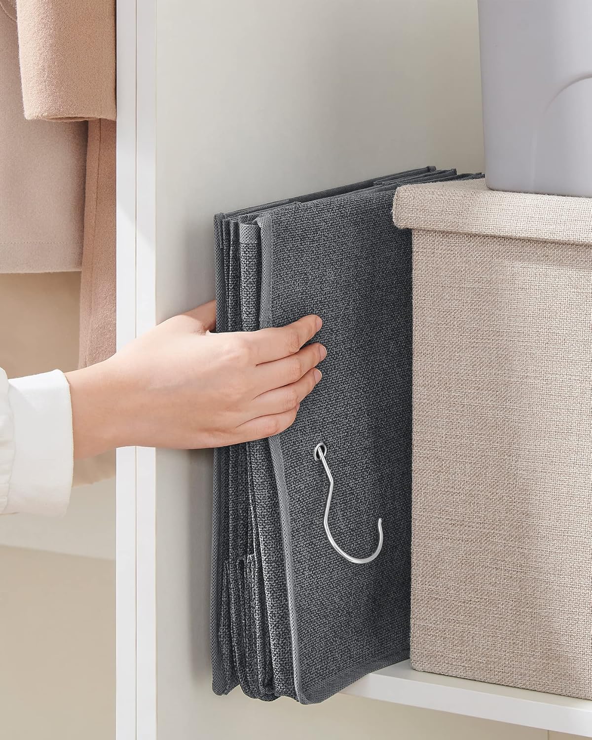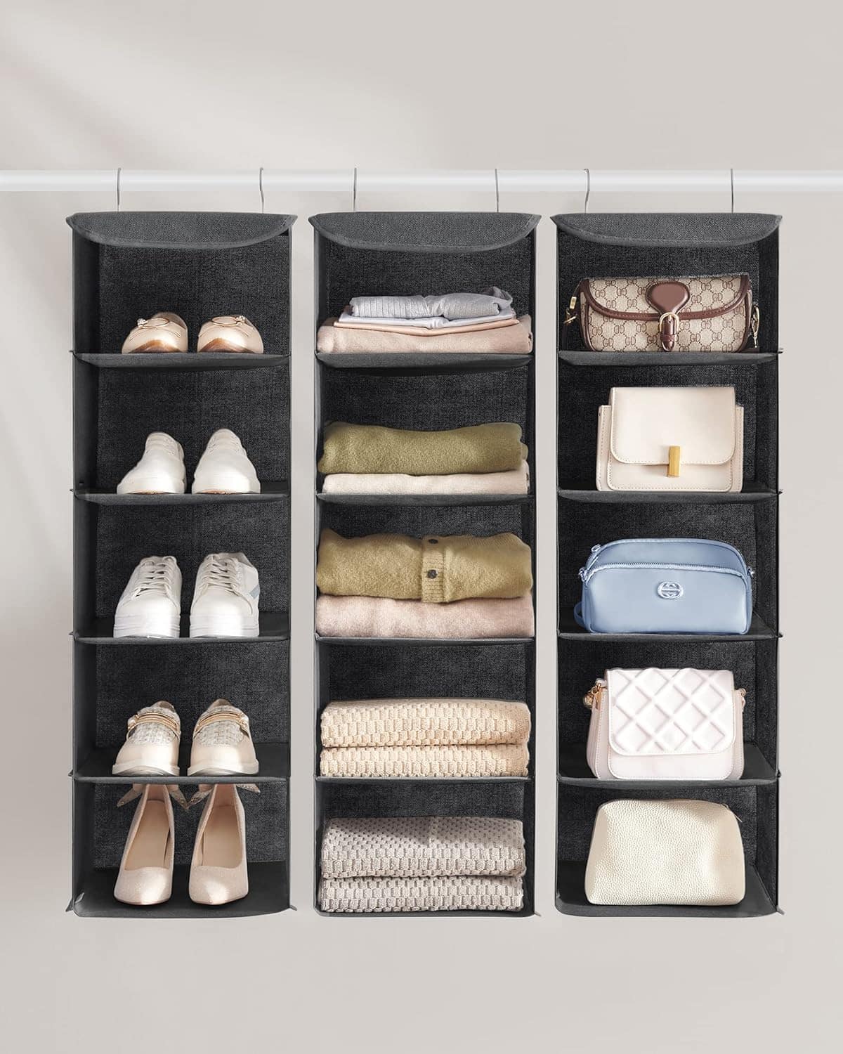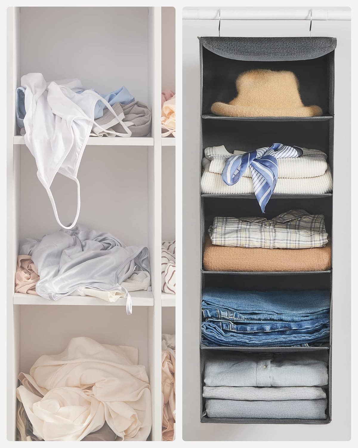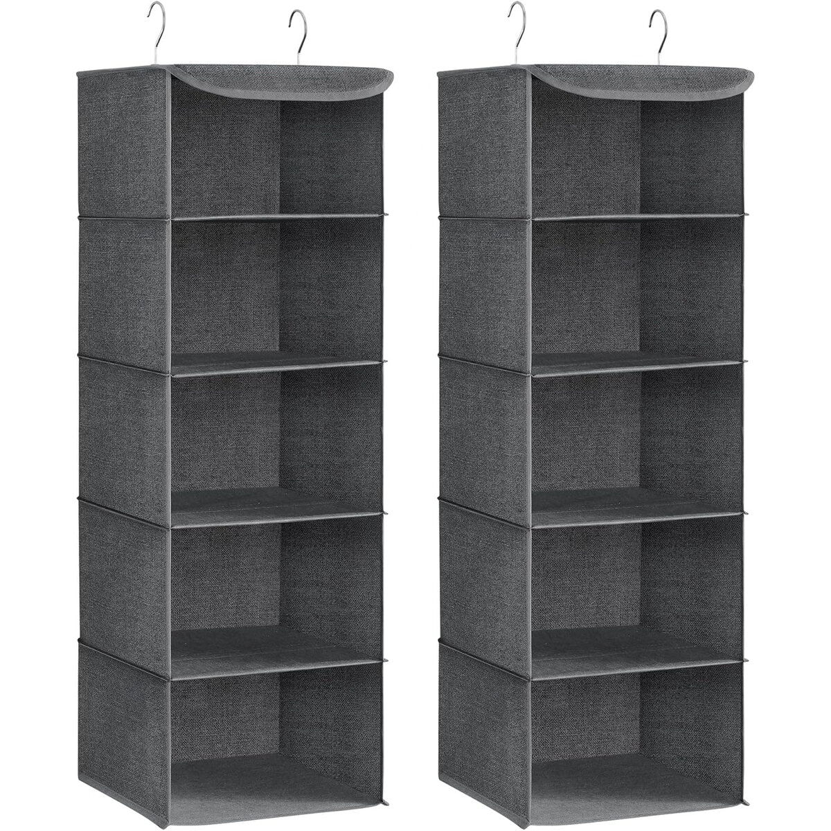 Set 2 bucati organizatoare suspendate pentru dulap, 5 rafturi, pliabil, 30x30x90 cm, gri Mob360