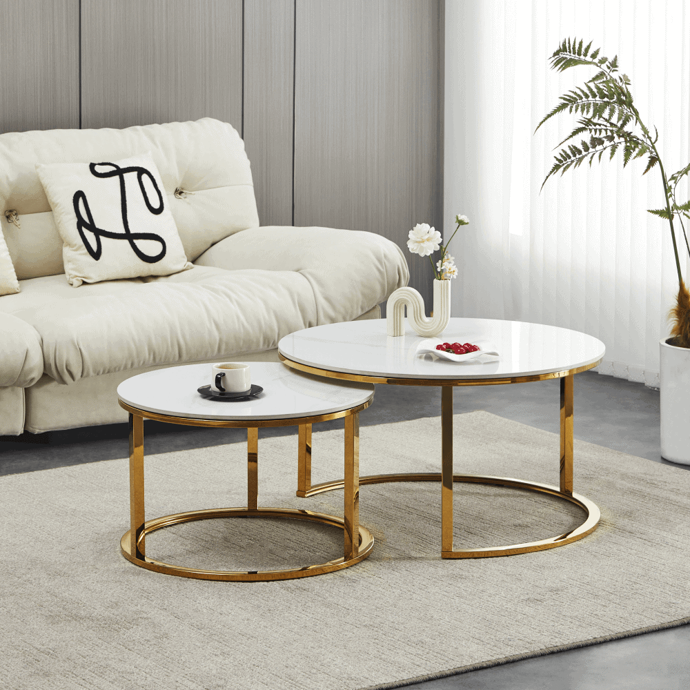 Set 2 mese de cafea, auriu/imitaţie de marmură, DEVNET 2 NEW
