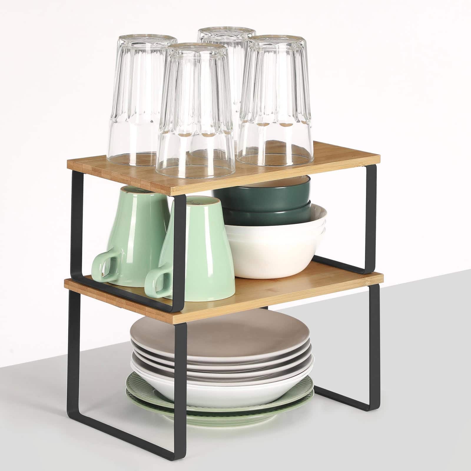 Set 2 rafturi de bucatarie suprapozabile, pentru ustensile sau condimente, 20x30x16cm, natur si negru Mob360 este disponibil în magazinul Mob360.