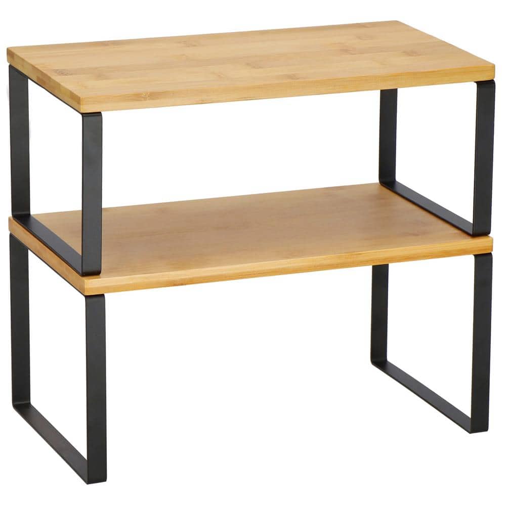Set 2 rafturi de bucatarie suprapozabile, pentru ustensile sau condimente, 20x34x16cm, natur si negru Mob360