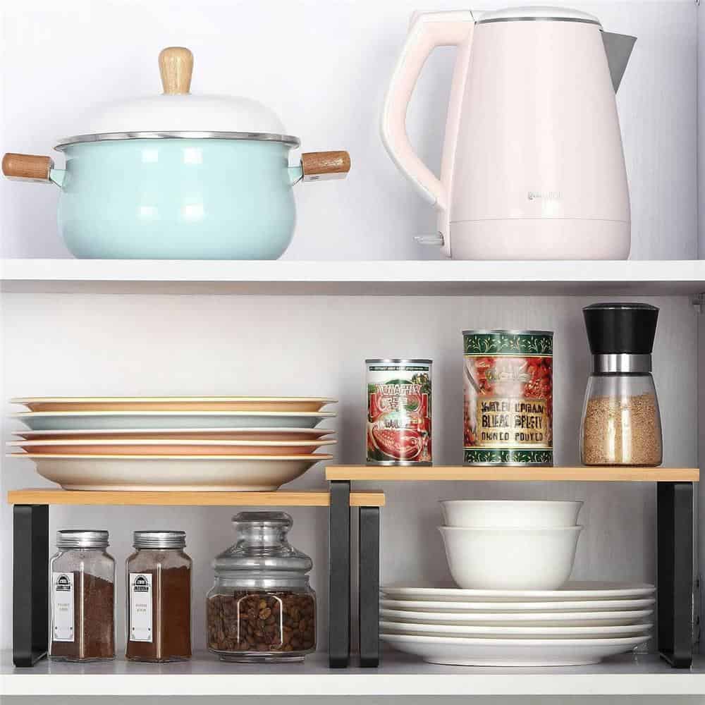 Set 2 rafturi de bucatarie suprapozabile, pentru ustensile sau condimente, 20x34x16cm, natur si negru Mob360 – produs disponibil în magazinul Mob360.