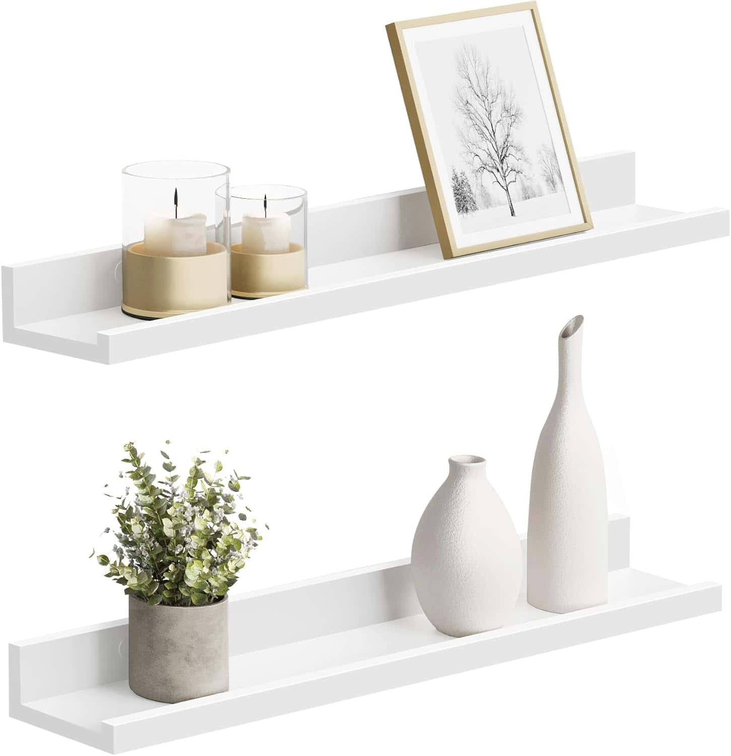 Set 2 rafturi plutitoare suspendate perete cu finisaj lucios, MDF, 60x10x5 cm, alb Mob360