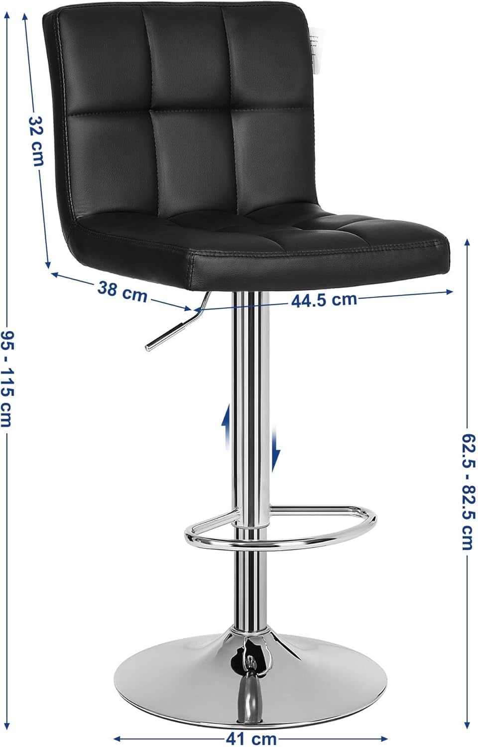 Set 2 scaune bar reglabile pe inaltime, cu spatar, sezut PU si suport picioare, rotatie 360°, 38x45x115 cm, negru Mob360