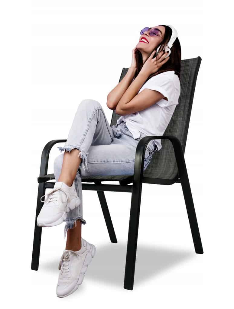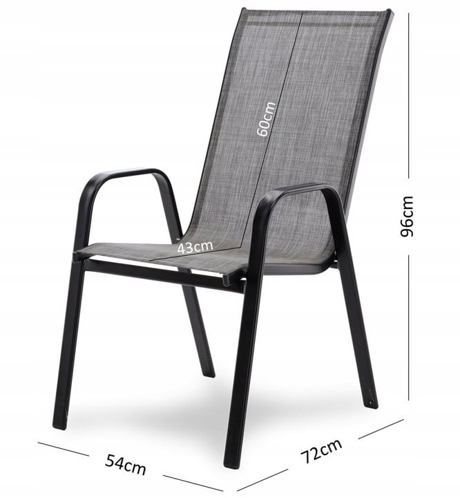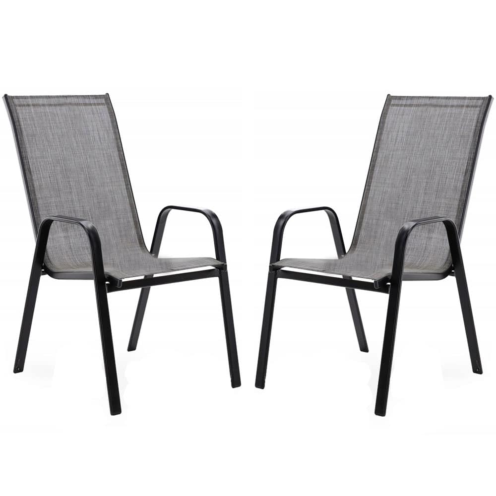 Set 2 scaune de gradina cu cadru metalic, stivuibile, 55x72x96cm, gri Mob360