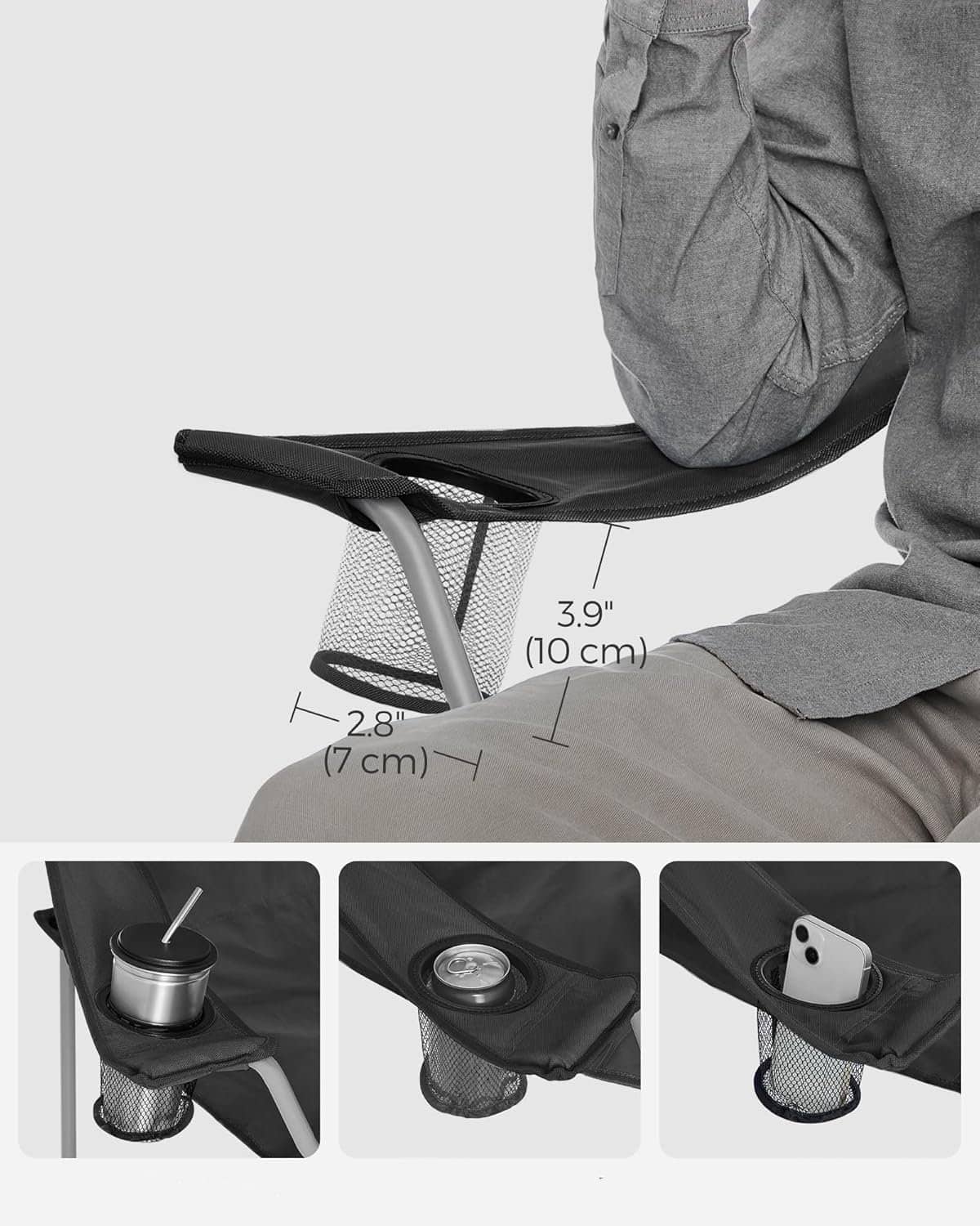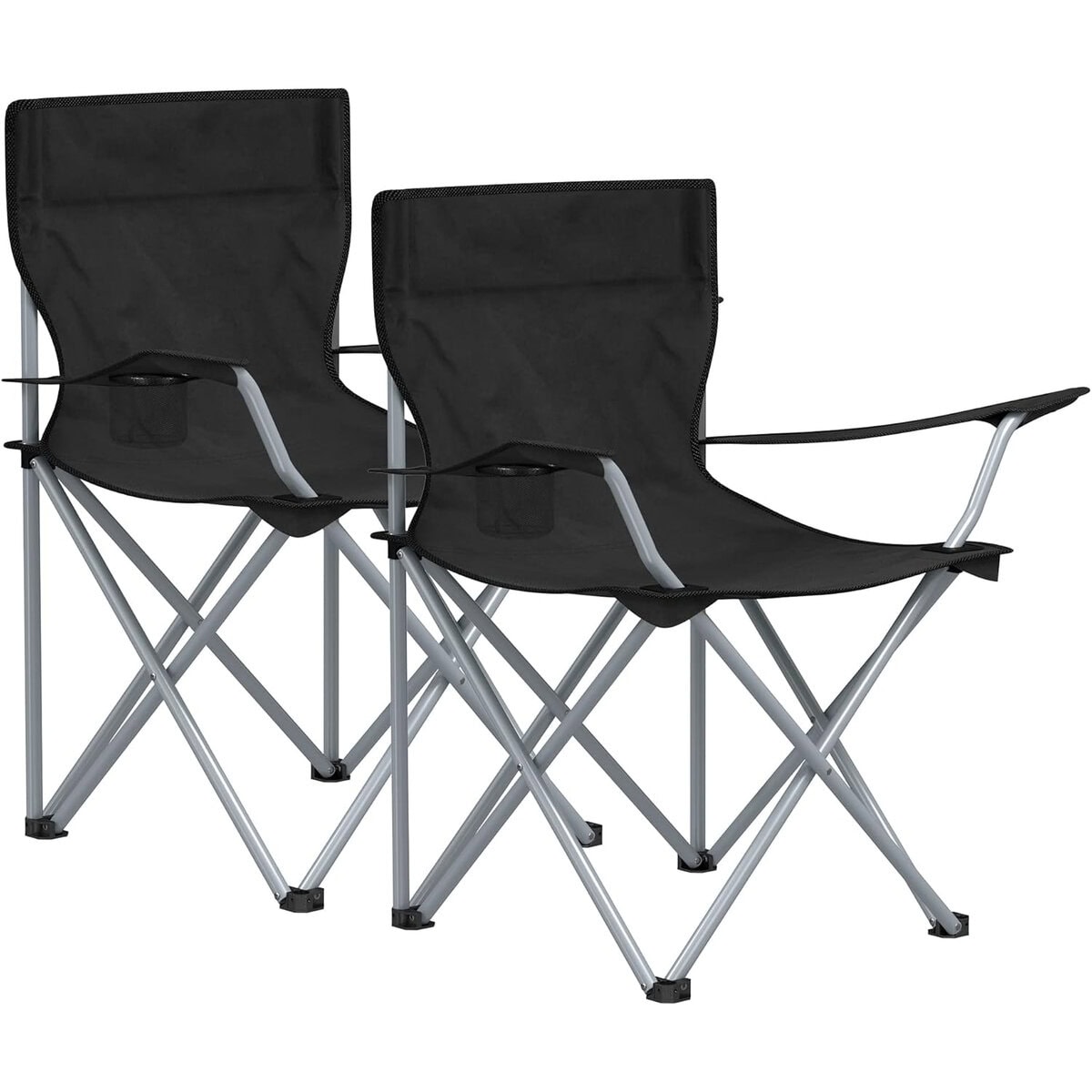 Set 2 scaune pliabile camping cu suport bauturi, husa transport, 52x84x81 cm, 120 kg, negru Mob360