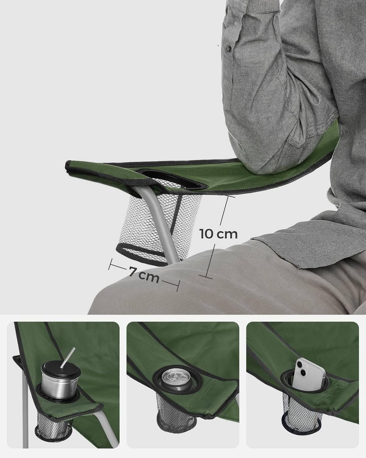 Set 2 scaune pliabile camping cu suport bauturi, husa transport, 52x84x81 cm, 120 kg, verde Mob360