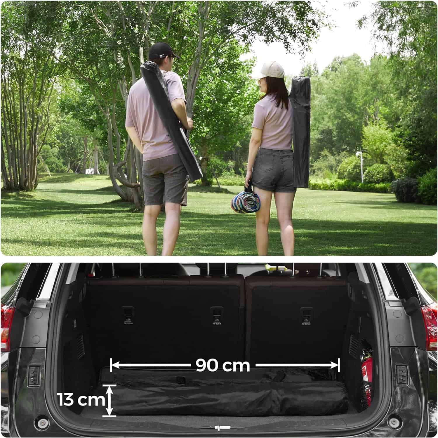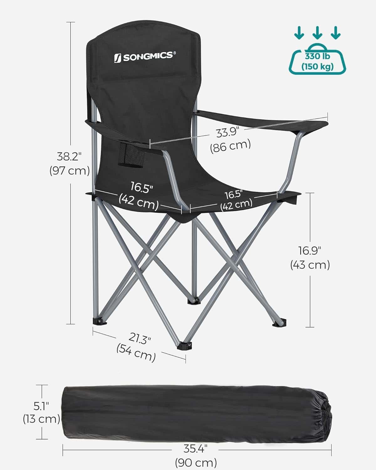 Scaunul de camping suporta pana la 150 kg.Scaunul pliabil compact cantareste doar 2,6 kg si poate fi pliat si depozitat in geanta de transport inclusa (dimensiune pliat: 13 x 90 x 13 cm), astfel incat sa il puteti aseza cu usurinta in masina sau sa-l agatati de rucsac.Pur si simplu desfaceti scaunul de plaja atunci cand il utilizati – fara asamblare complicata.
