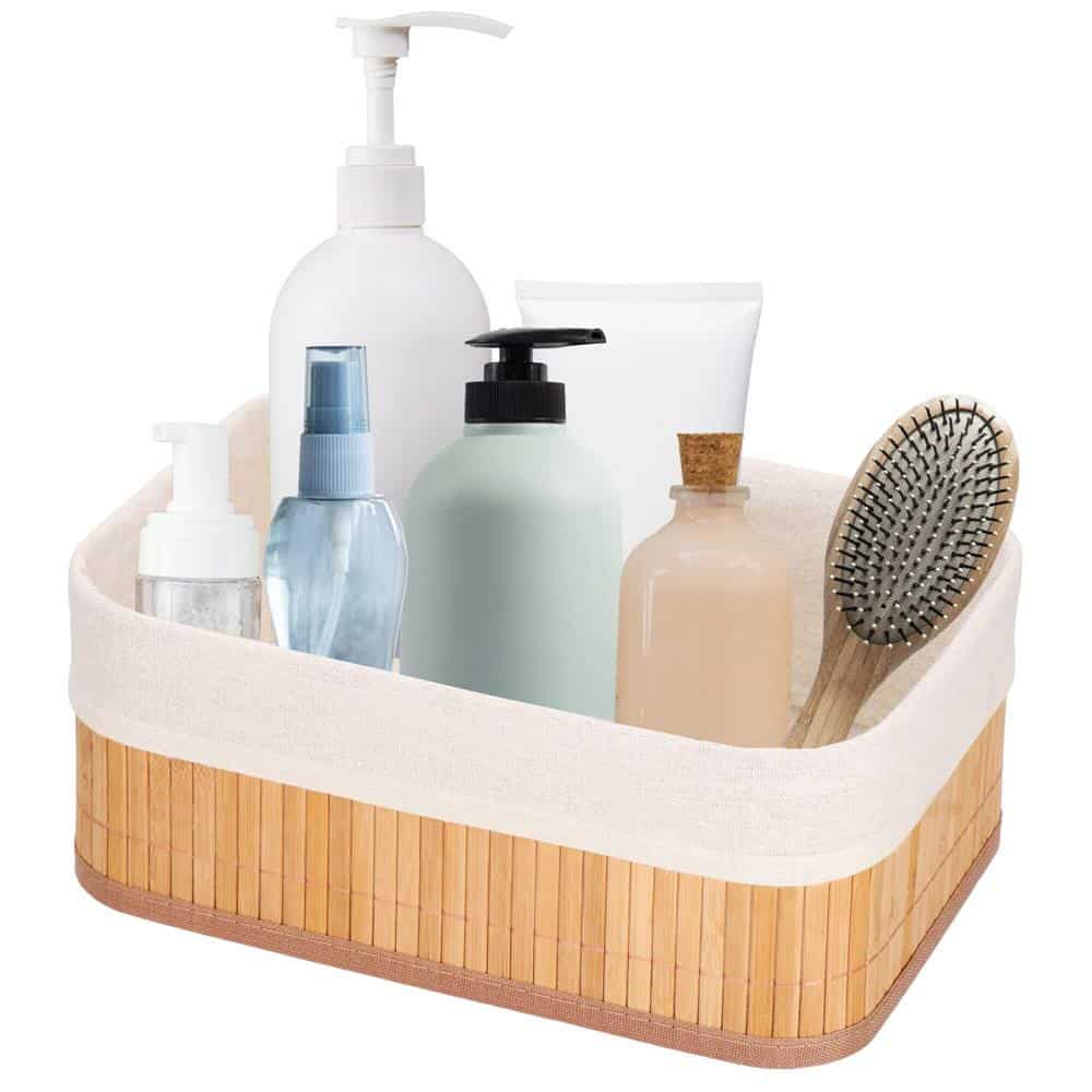 Culoare: maro deschis/ecru Material: bambus, MDF, material, metal Un set de trei organizatoare de cutii deschise cu dimensiuni 20 x 10 x 8 cm 25 x 15 x 10 cm 30,5 x 20,5 x 12 cm Organizatoarele vor face ca orice camera sa arate ingrijita si ordonata. Va permit sa va gestionati mai bine spatiul. Setul nostru de trei cutii din bambus va va ajuta sa organizati ustensilele mici de birou, bijuteriile sau cosmeticele si accesoriile de machiaj. In acelasi timp, constituie un accesoriu estetic si elegant pentru orice camera. Produsul este fabricat din bambus si tesatura. Combinatia clasica de culori se va potrivi frumos pe un birou sau pe un raft. In plus, este usor si la indemana. Elementele organizatorului nostru sunt trei cutii deschise din bambus de dimensiuni diferite.