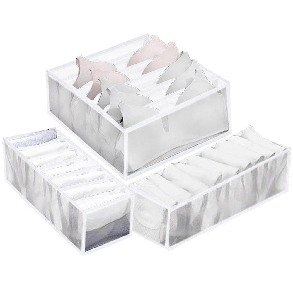 Set 3 organizatoare sertar pliabile pentru sosete/lenjerie, alb Mob360 – produs disponibil în magazinul Mob360.