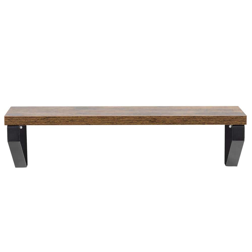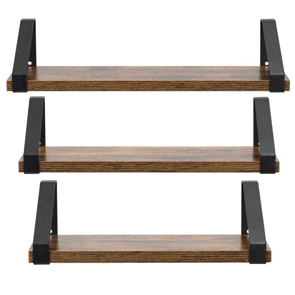 Set 3 rafturi de perete din metal si MDF, 30-35-40×12 cm, negru si maro Mob360