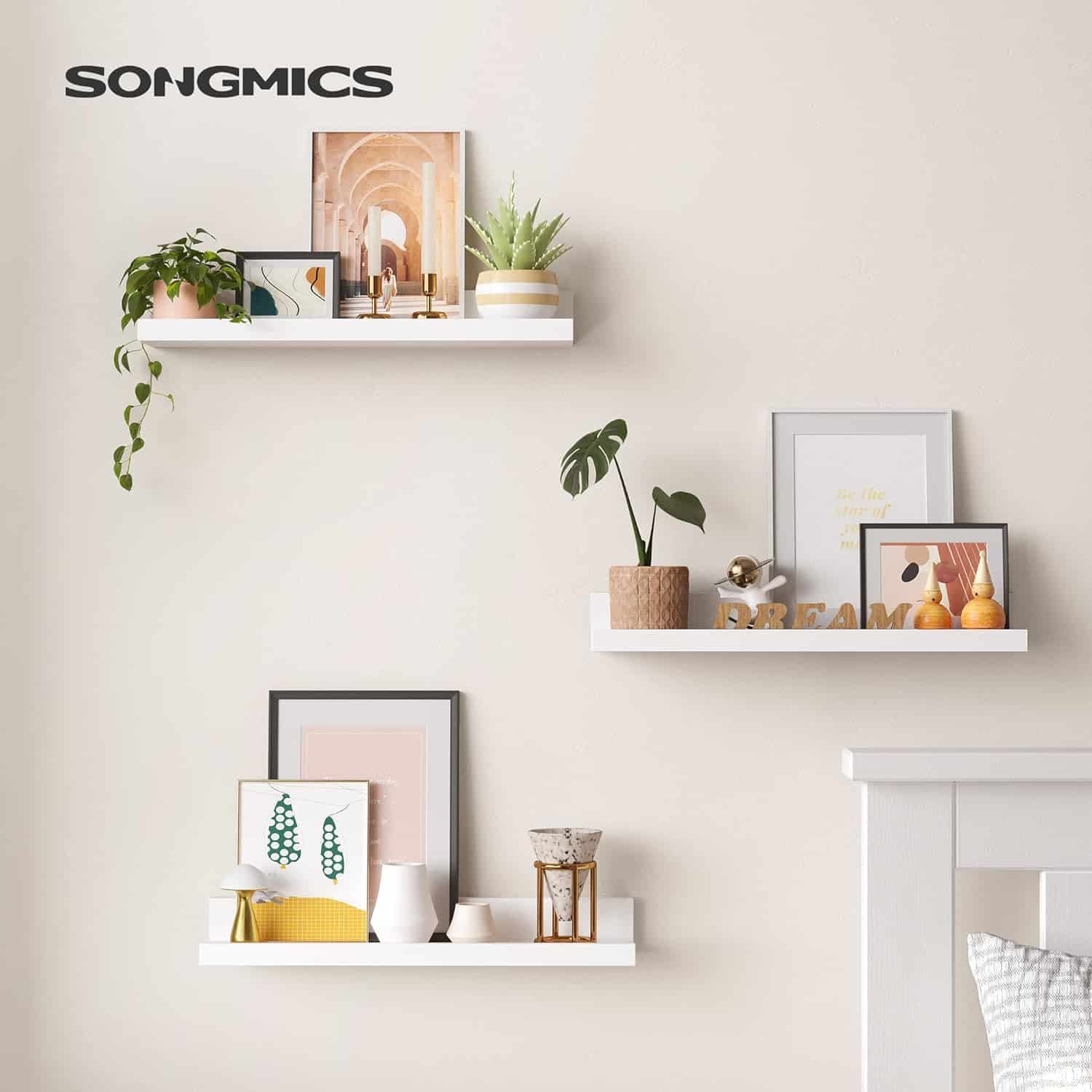 Set 3 rafturi de perete plutitoare din MDF, suport pentru rame foto, 38x10cm, alb Mob360 este disponibil în magazinul Mob360.