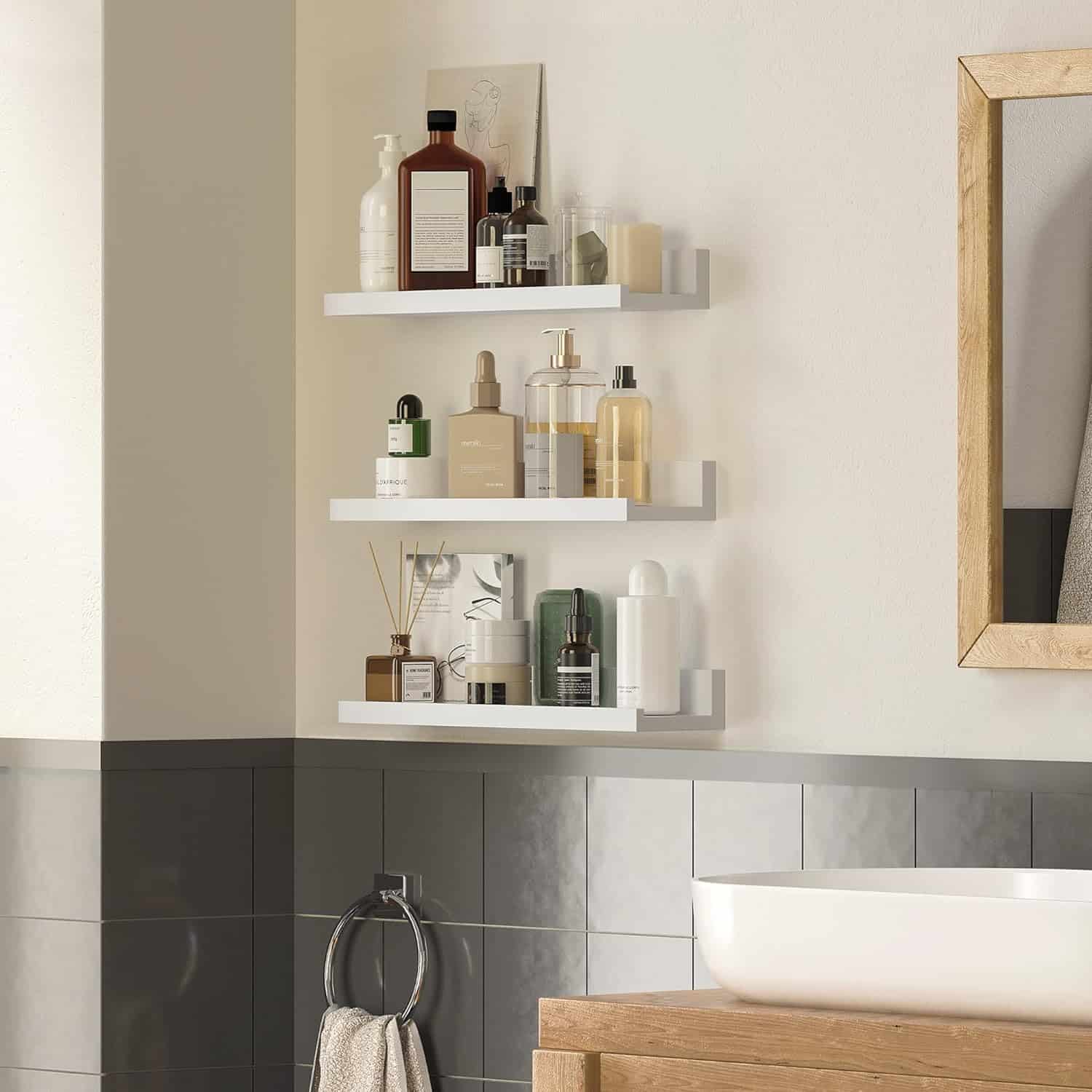 Marginea frontala de 2 cm a rafturilor de perete va protejeaza obiectele de alunecare.Instalare usoara: Pur si simplu gauriti in perete, instalati rafturile cu suruburile furnizate si gata.