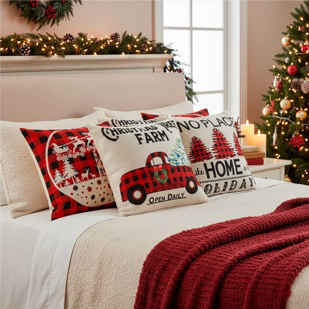 Set 4 fete de perna decorative, 40×40 cm, motive de Craciun, alb rosu Mob360