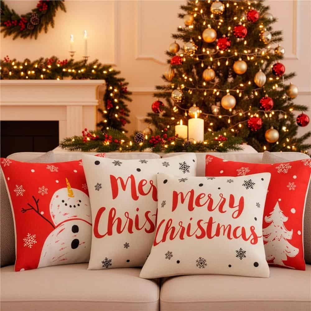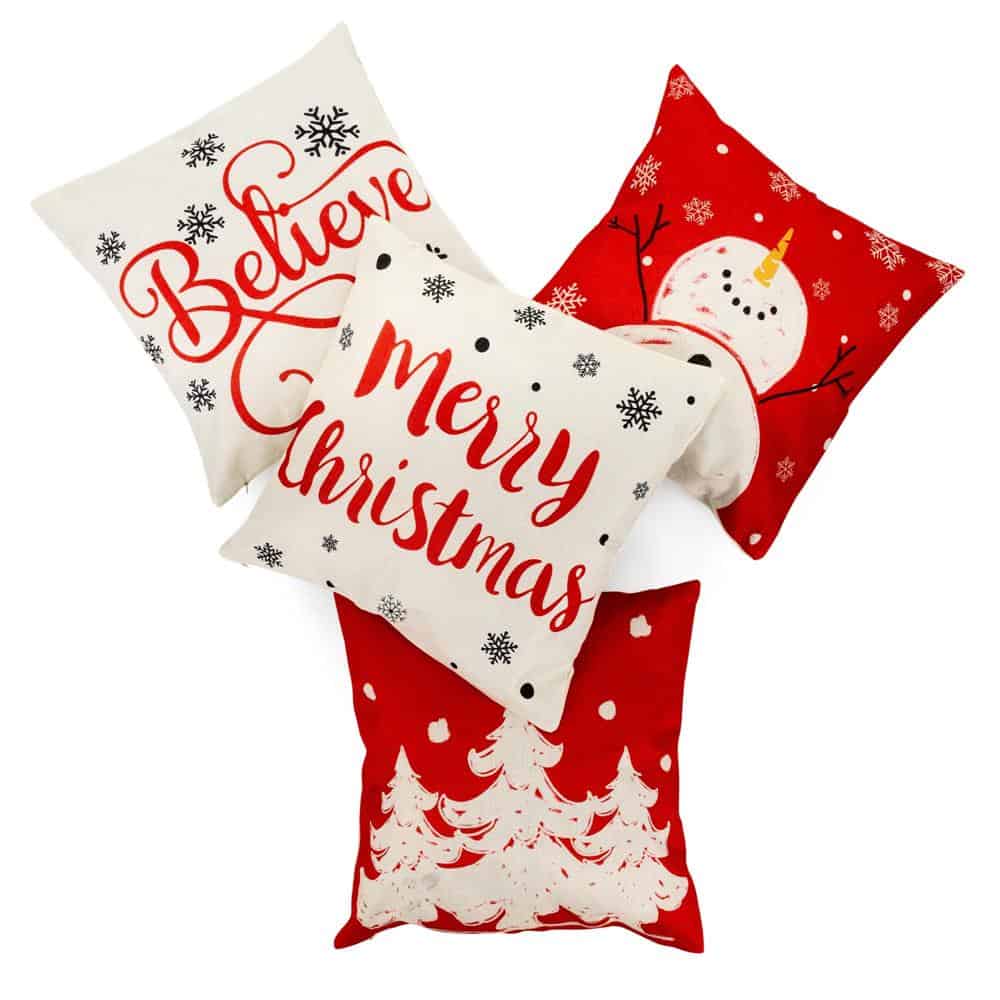 Set 4 fete de perna decorative, 40×40 cm, motive de Craciun, rosu alb Mob360
