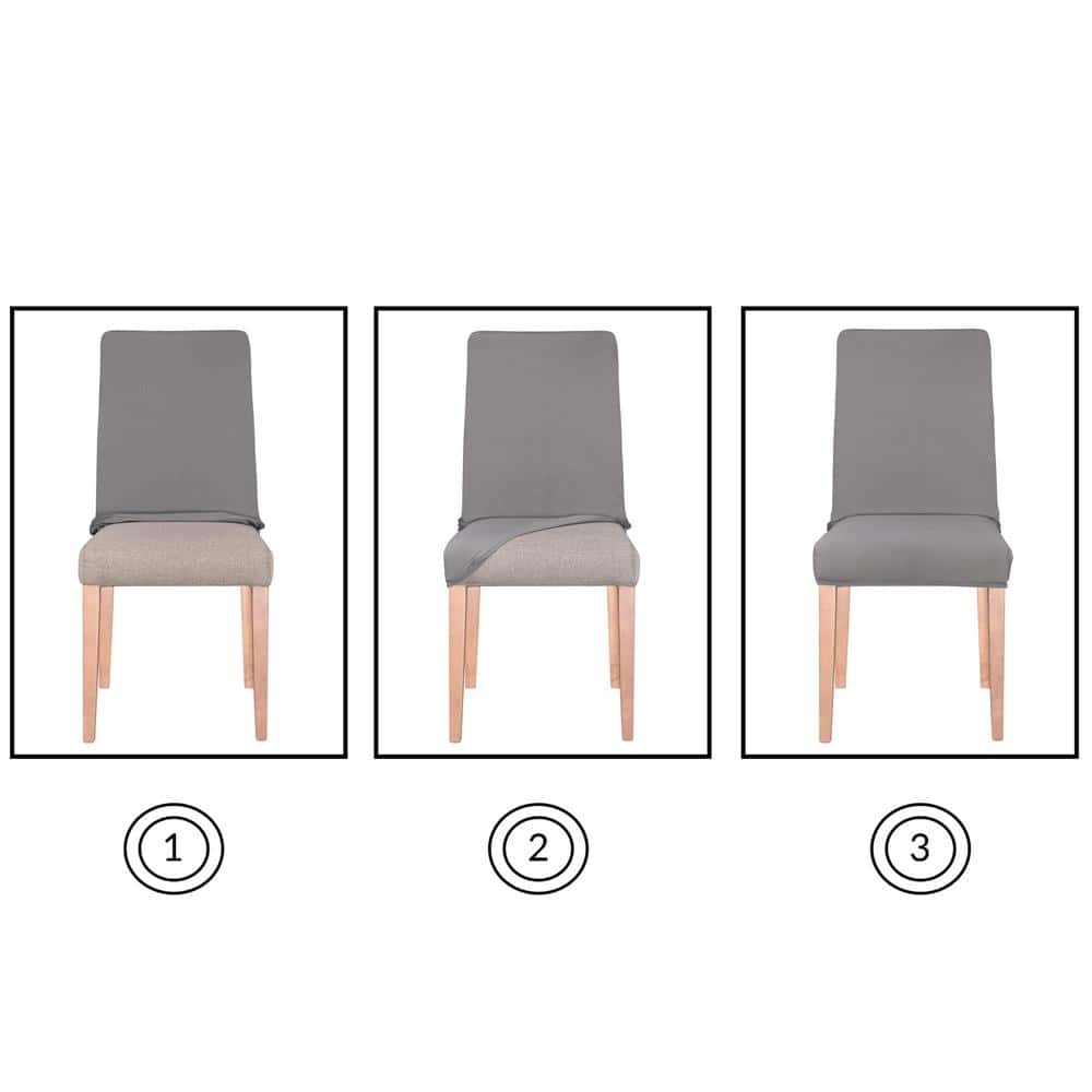 Set 4 huse universale pentru scaun, marime universala, poliester si spandex, 45 cm x 60 cm, gri Mob360