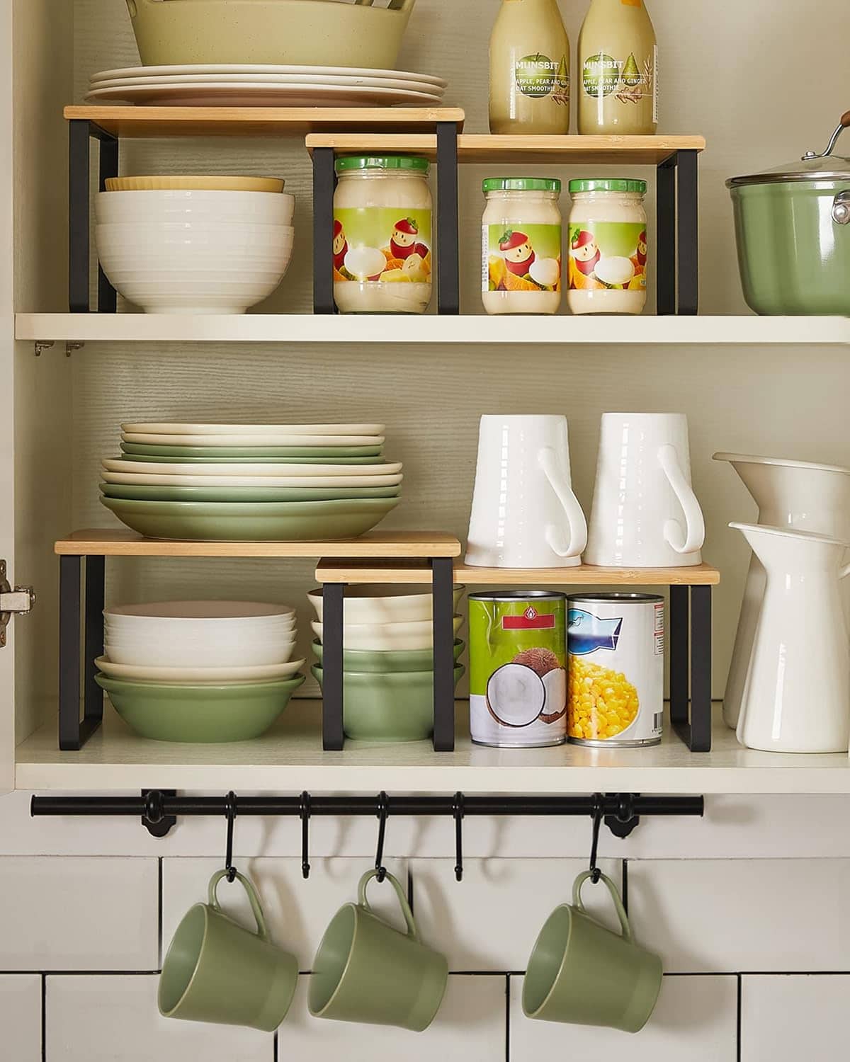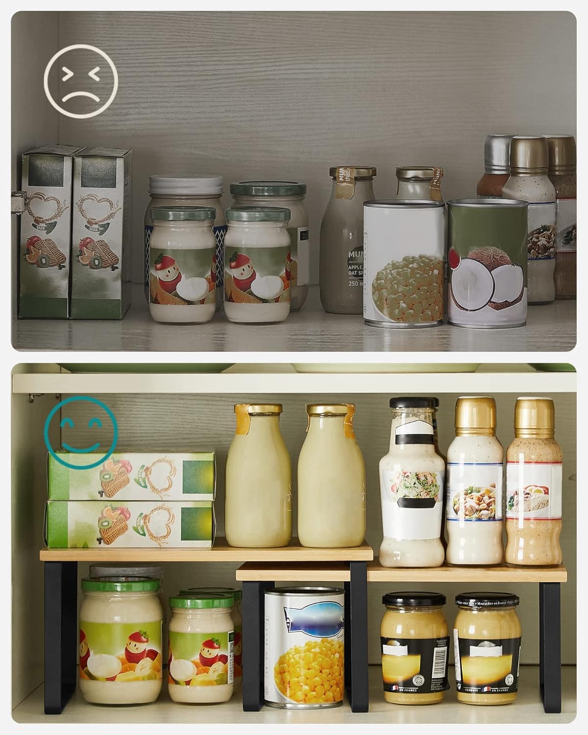Set 4 rafturi de bucatarie suprapozabile, pentru ustensile sau condimente, 20x30x16cm, natur si negru Mob360
