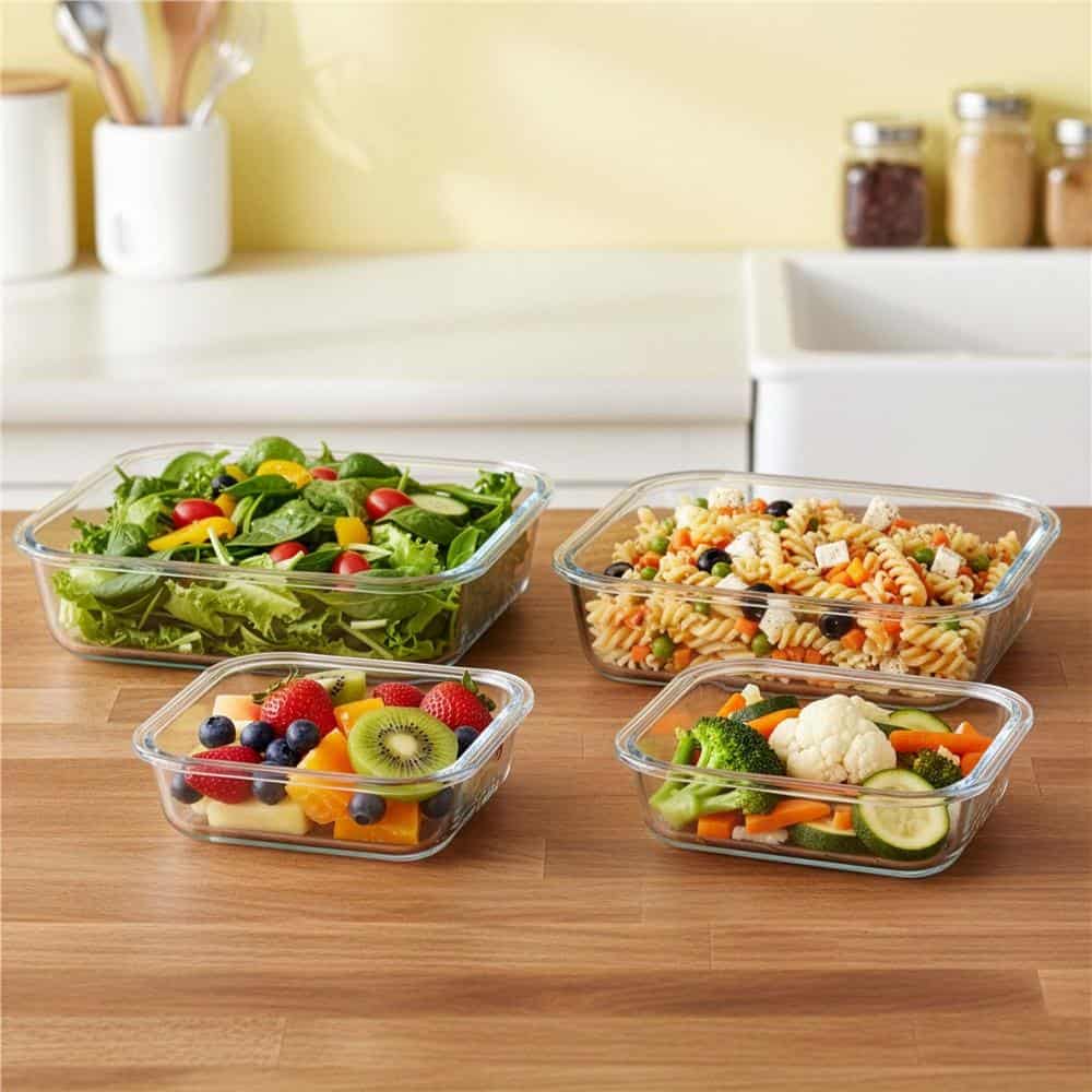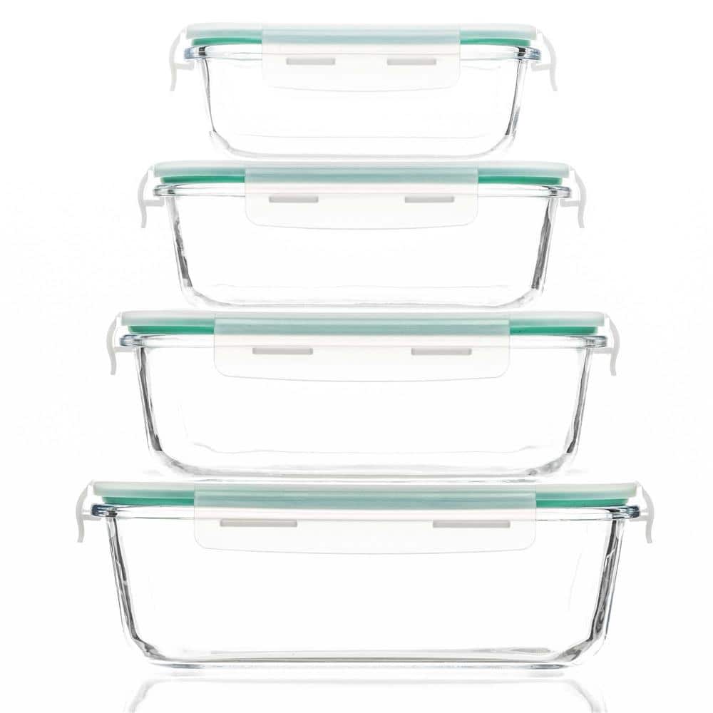 Set 4 recipiente din sticla termorezistenta, cu capac etans, BPA free, 350ml / 600ml / 1000ml / 1450ml , transparent Mob360 – produs disponibil în magazinul Mob360.
