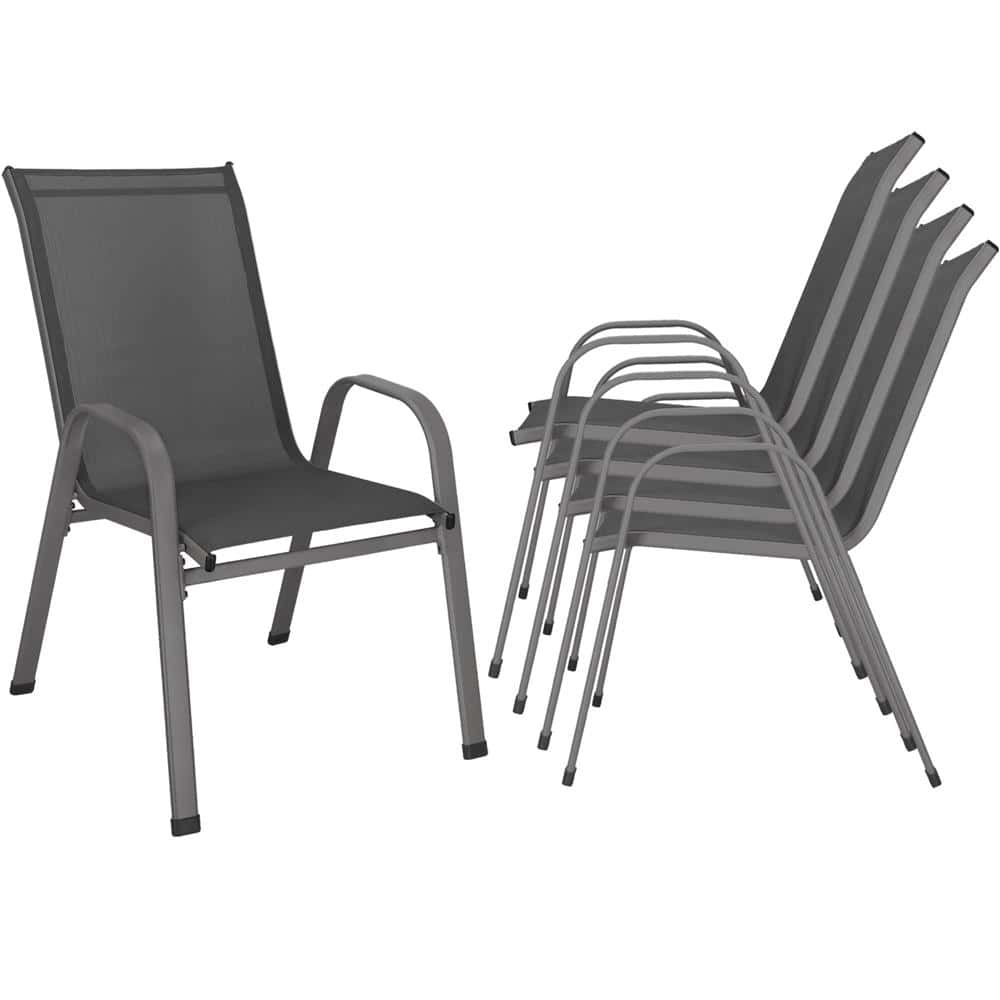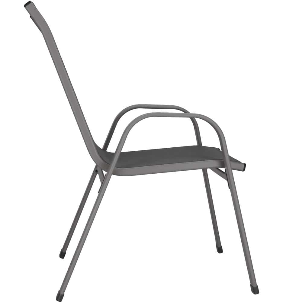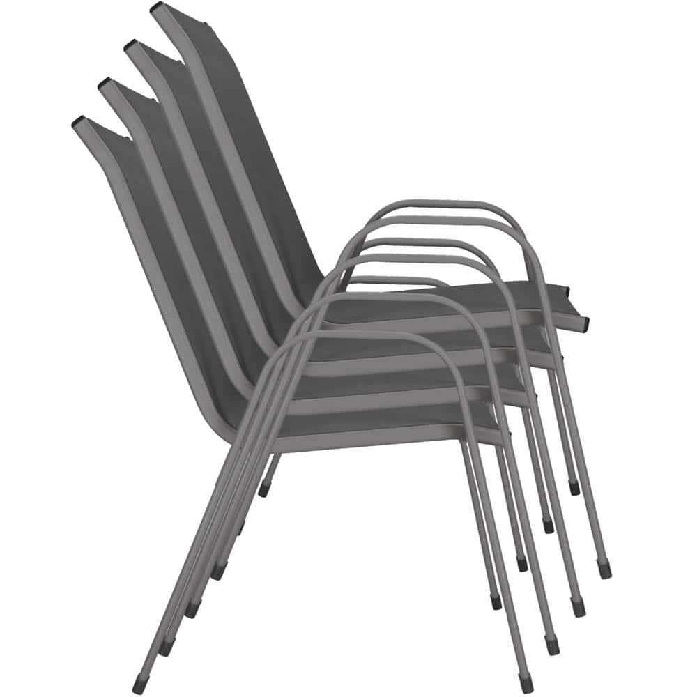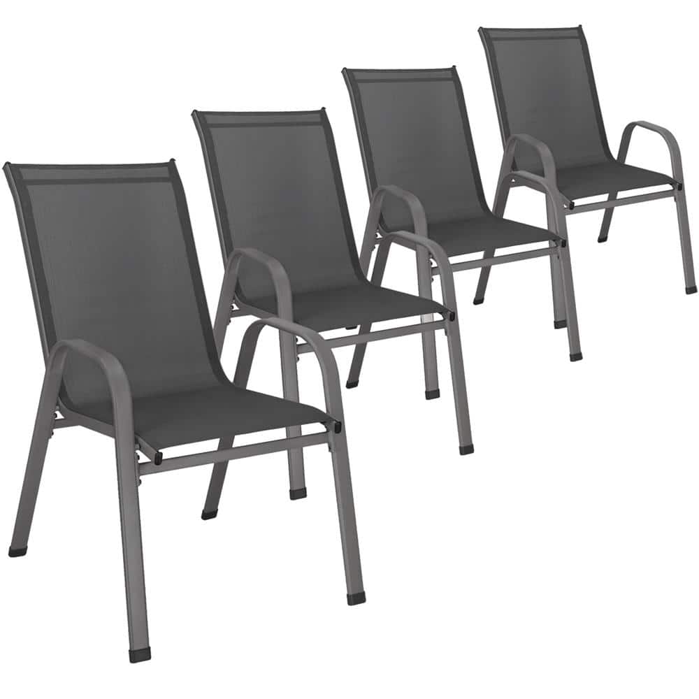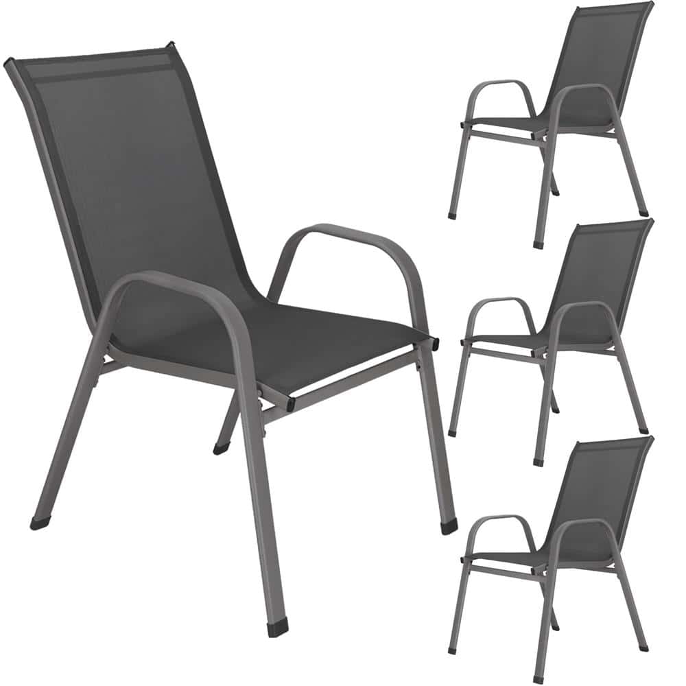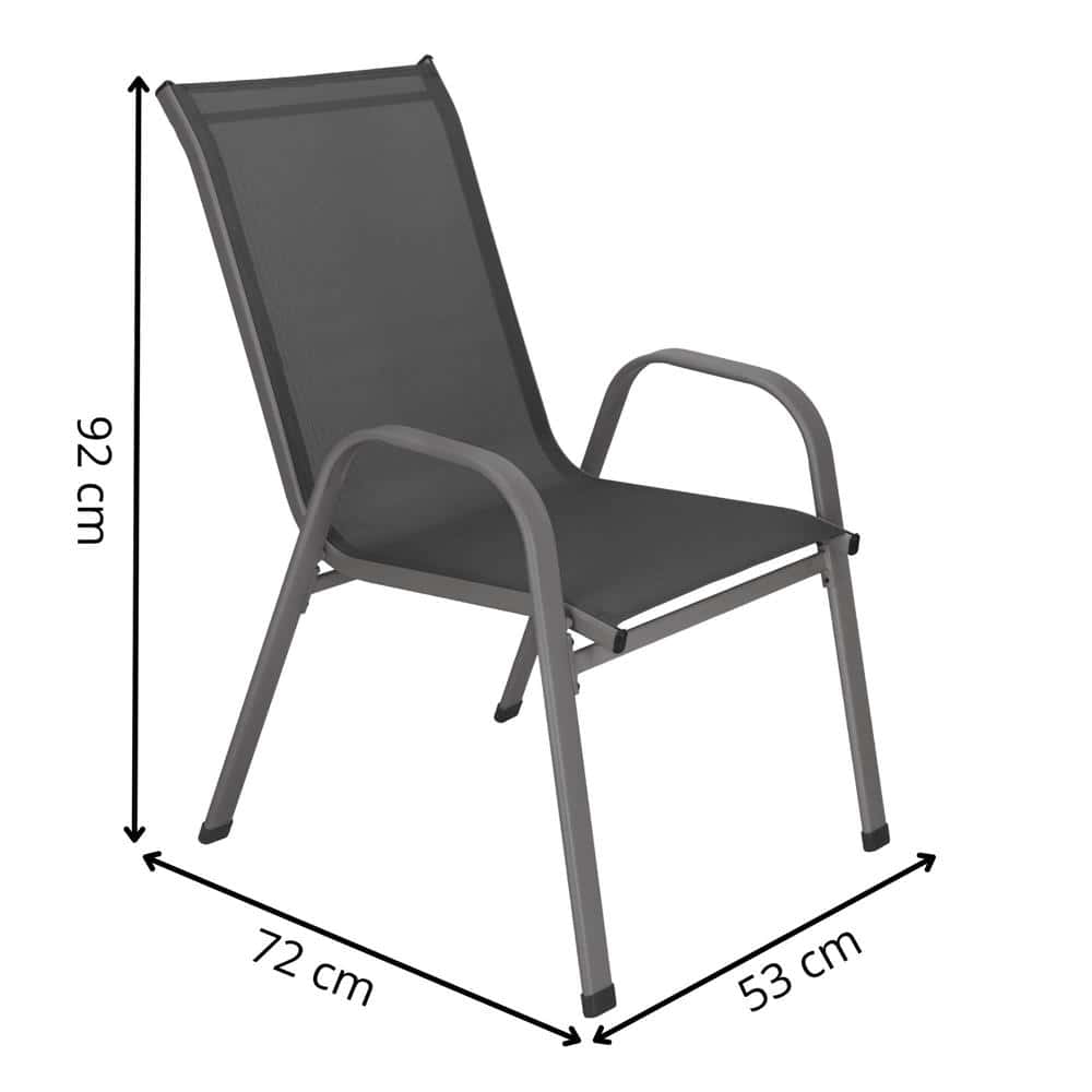 Set 4 scaune gradina cu brate, cadru otel si sezut textilene, 53x72x92 cm, gri Mob360
