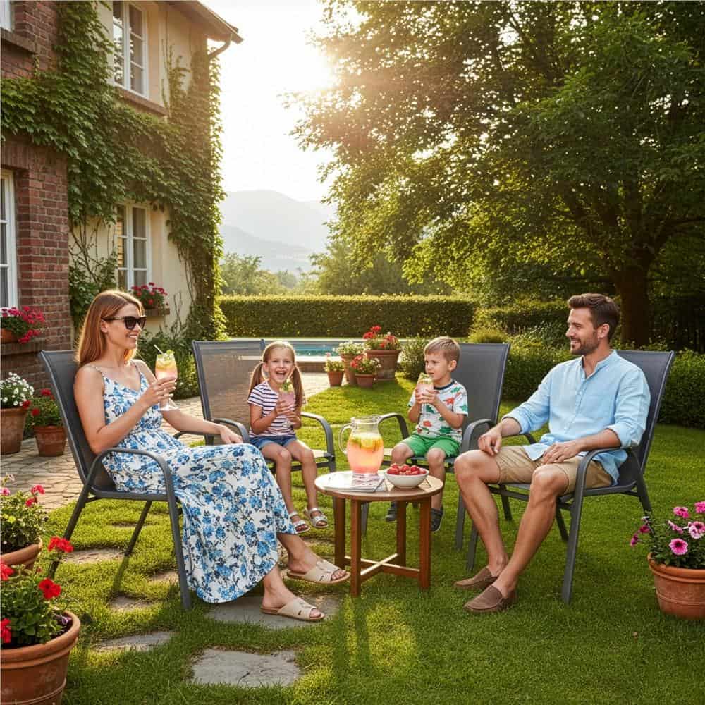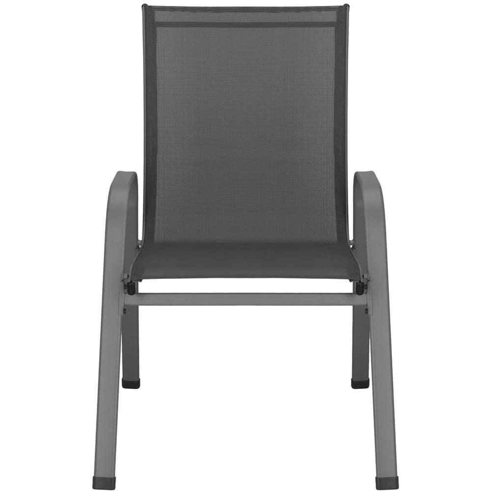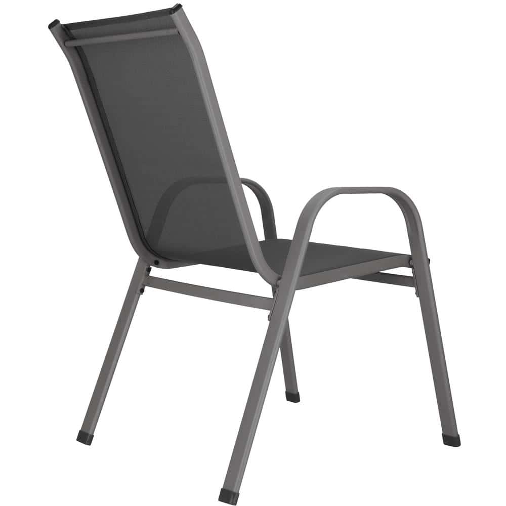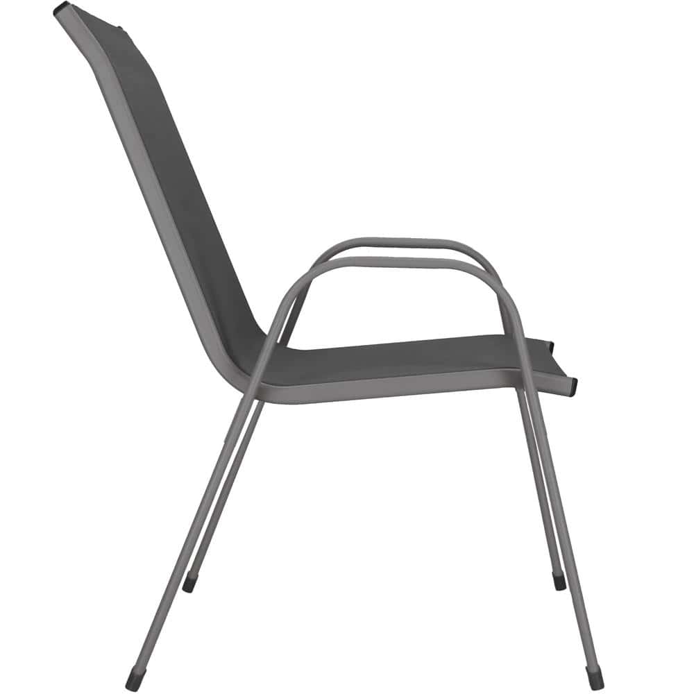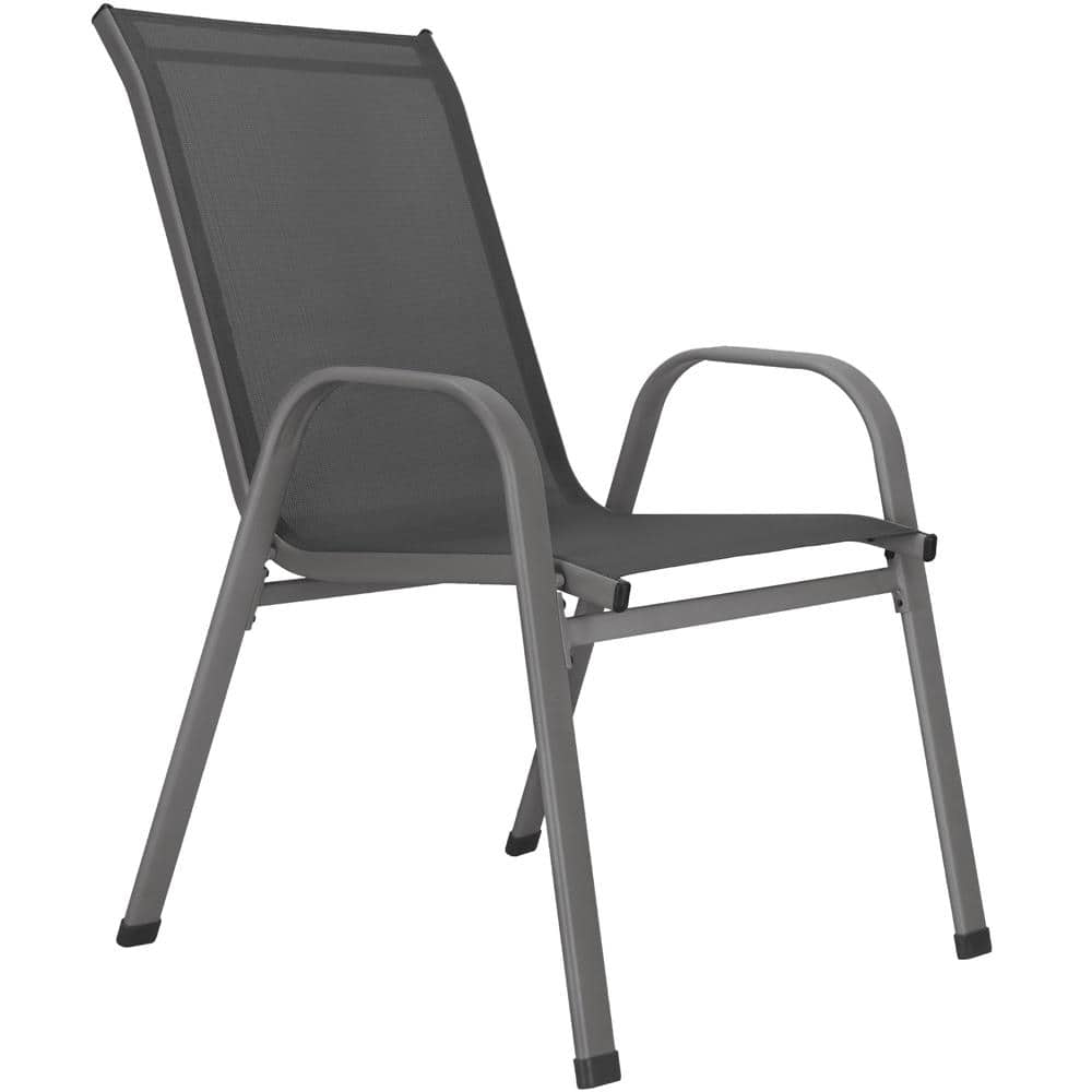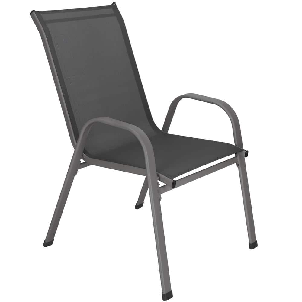 Set 4 scaune gradina cu brate, cadru otel si sezut textilene, 53x72x92 cm, gri Mob360