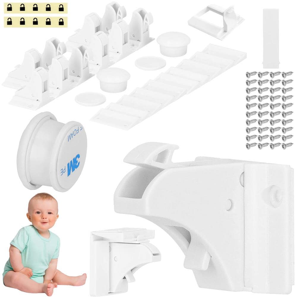 Set 4 sigurante magnetice ascunse, blocator sertare si usi, 2 sisteme fixare incluse, alb Mob360