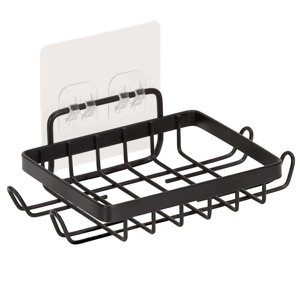 Set 5 polite metalice pentru dus cu montaj autoadeziv, inox, negru mat Mob360