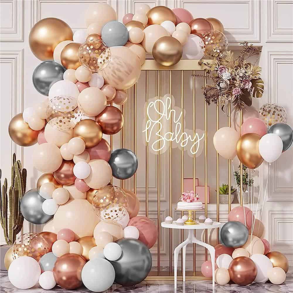 Parametrii: Numar de piese per set: 50 + toleranta +/- 2 bucati Culoare: multicolor Inaltime dupa umflare: aprox. 40 cm Material: latex Baloanele sunt impresionante, ele pot crea decoratiuni multicolore cu un impact vizual mare pe care oaspetii le pot vedea de la intrare, de pe scaun sau dansand. Decoratiunile din baloane dau o deosebita culoare atmosferei, petrecerea va fi magica. Culoare intensa atunci cand baloanele sunt umflate Festivitatea ta va arata gata de instagram-ready! Buchetele mari de baloane colorate dau ringului de dans un farmec aparte. Arcade decorate cu baloane vor pune in prim plan masa sarbatoritilor si intreaga incapere. Indiferent daca doresti sa decorezi o mica petrecere, o receptie sau o nunta, decoratiunile noastre cu baloane vor transforma evenimentul intr-o experienta extraordinara. Setul include: 12x baloane gri metalizat 10x balon alb 18x balon roz metalizat 10x balon transparent cu confetti