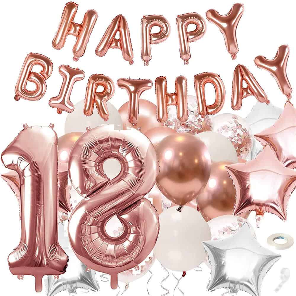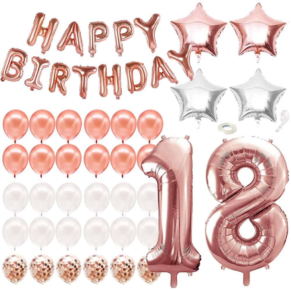 Set 53 baloane si decoratiuni Aniversare Majorat 18 Ani, rose auriu Mob360