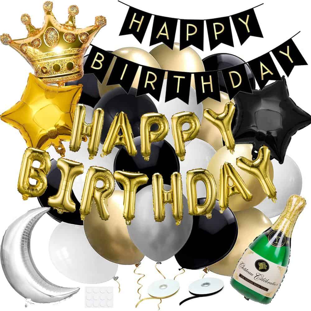 Set 53 baloane si decoratiuni, Happy Birthday, argintiu, negru, auriu Mob360 – produs disponibil în magazinul Mob360.