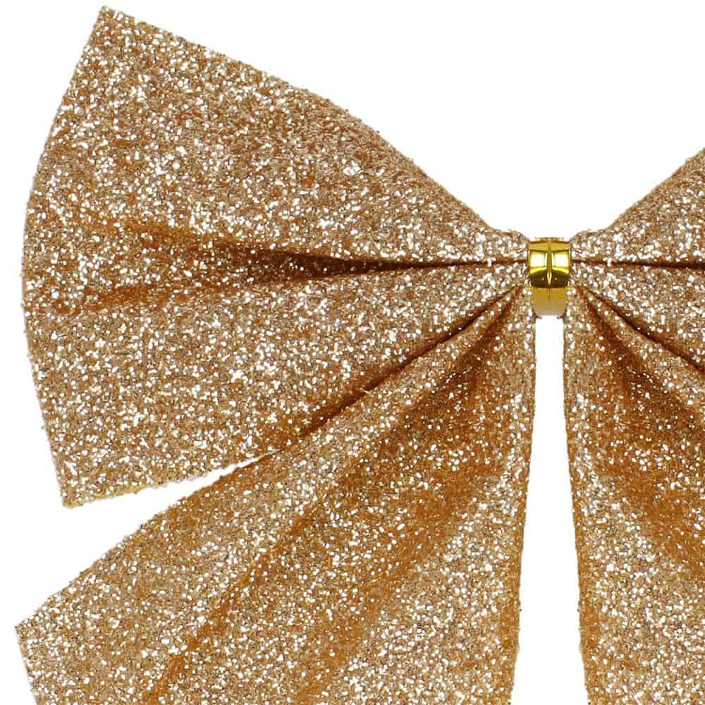 Culoare: auriu + sclipici Numar de piese: 6 Un fir de aur este atasat de arc Dimensiuni: Inaltimea arcului: 8 cm Latime aprox: 7 cm Grosime: 0,2 mm Craciunul, ca si intreaga perioada de iarna, este o perioada magica, plina de caldura si o atmosfera unica, creata gratie unui sarbatoare de decoratiuni fabuloase si constelatii de lumina fermecatoare. Datorita decoratiunilor pentru brad, vei crea aranjamente unice de Craciun, pline de decoratiuni originale care cu siguranta vor incanta toti membrii gospodariei si oaspetii. Indestructibil – sigur pentru casele cu copii si animale de companie In culori la moda – vor fi perfecte atat pentru decorurile traditionale, cat si pentru cele moderne Realizat cu grija – cu atentie la cel mai mic detaliu Funditele pentru bradul de Craciun va vor permite sa va decorati casa de Craciun intr-un mod nelimitat. Puteti crea din ele: Aranjamente unice pentru bradul de Craciun Aranjamente de masa si de pervaz Decoratiuni pentru usi si ornamente pentru rame de usa Cadouri practice de Craciun pentru cei dragi Impachetari unice pentru cadouri – folositi mai multe in loc de funda