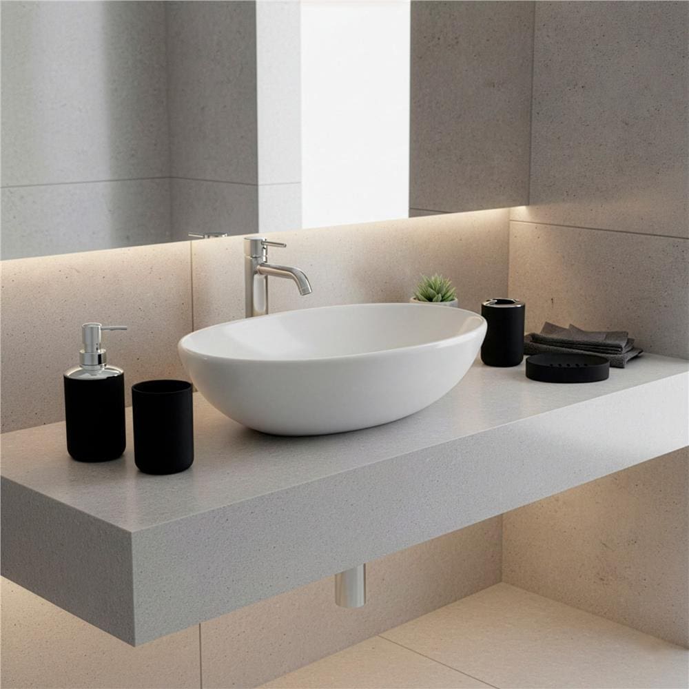 Specificatii tehnice: Material: PP Culoare: Negru, argintiu Finisaj: Mat / lucios Numar piese set: 6 Scurta descriere: Set complet de accesorii pentru baie, realizat din plastic rezistent, cu finisaj mat si lucios. Include toate elementele esentiale pentru organizare si igiena zilnica. Designul modern permite integrarea usoara in bai contemporane. Caracteristici principale: Set complet cu 6 accesorii pentru baie Material rezistent din plastic Finisaj modern mat si lucios Usor de curatat si intretinut Design compact si practic Potrivit pentru baie de uz zilnic