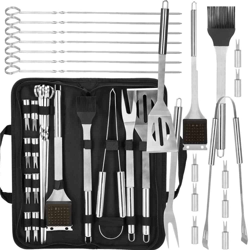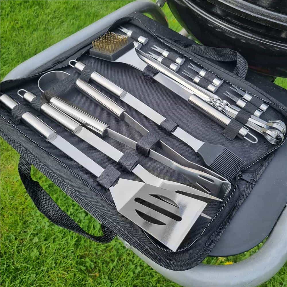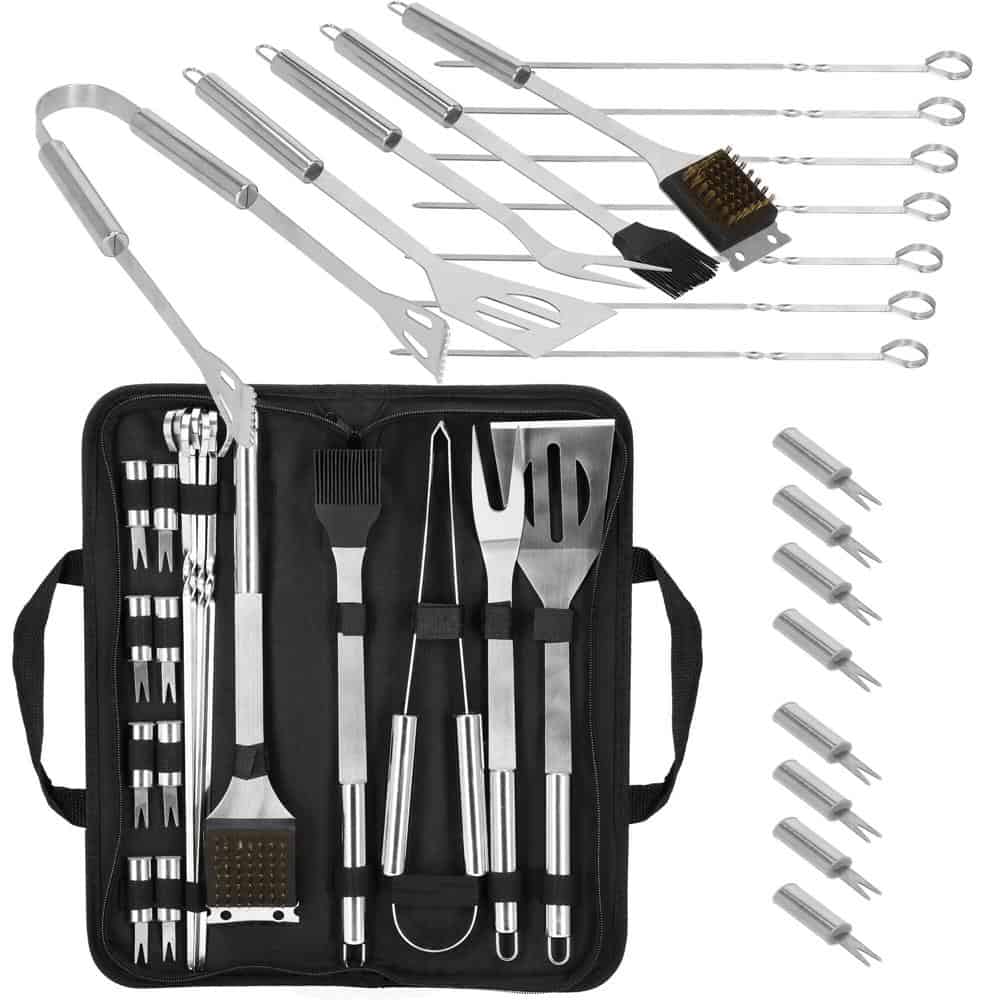 Set accesorii pentru gratar din inox, 20 de piese inclusiv perie, husa transport Mob360