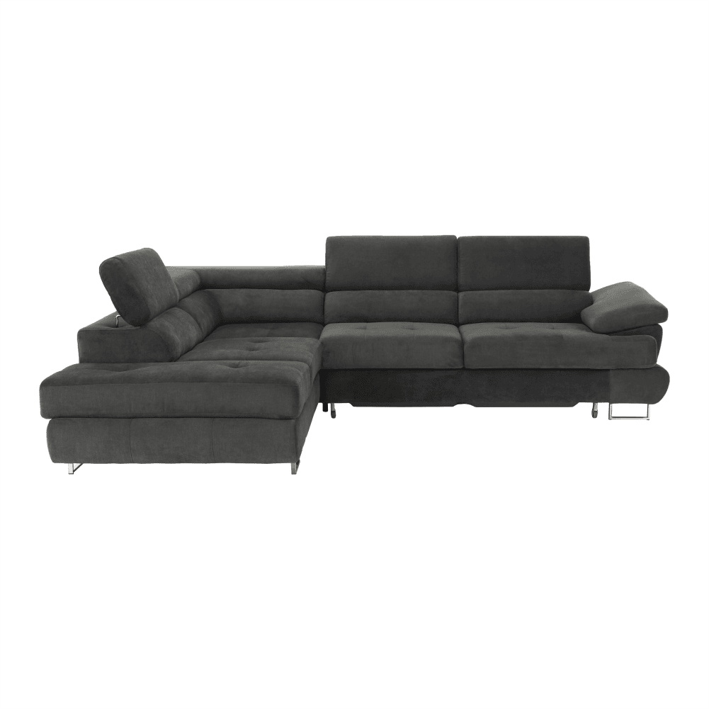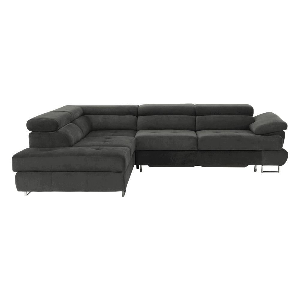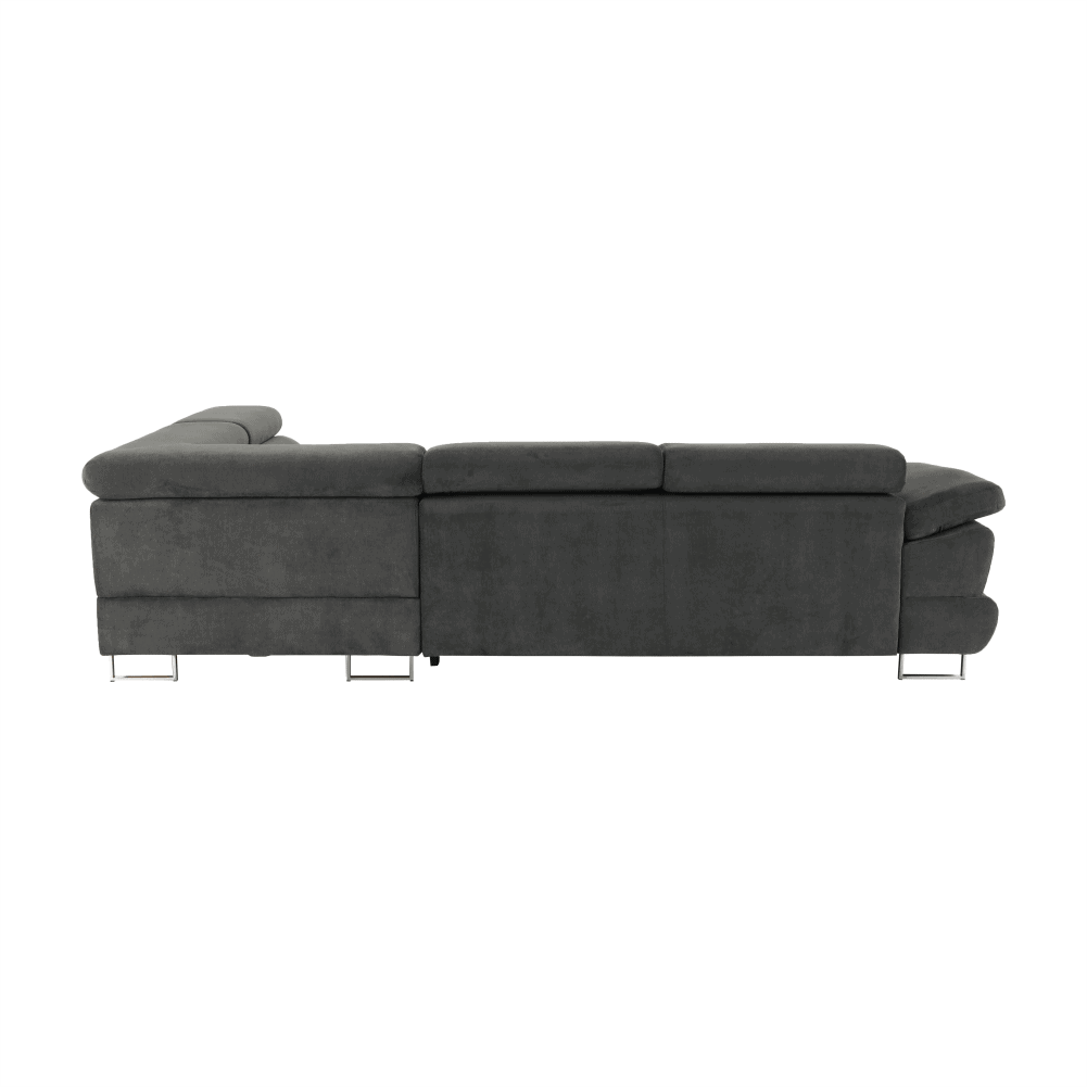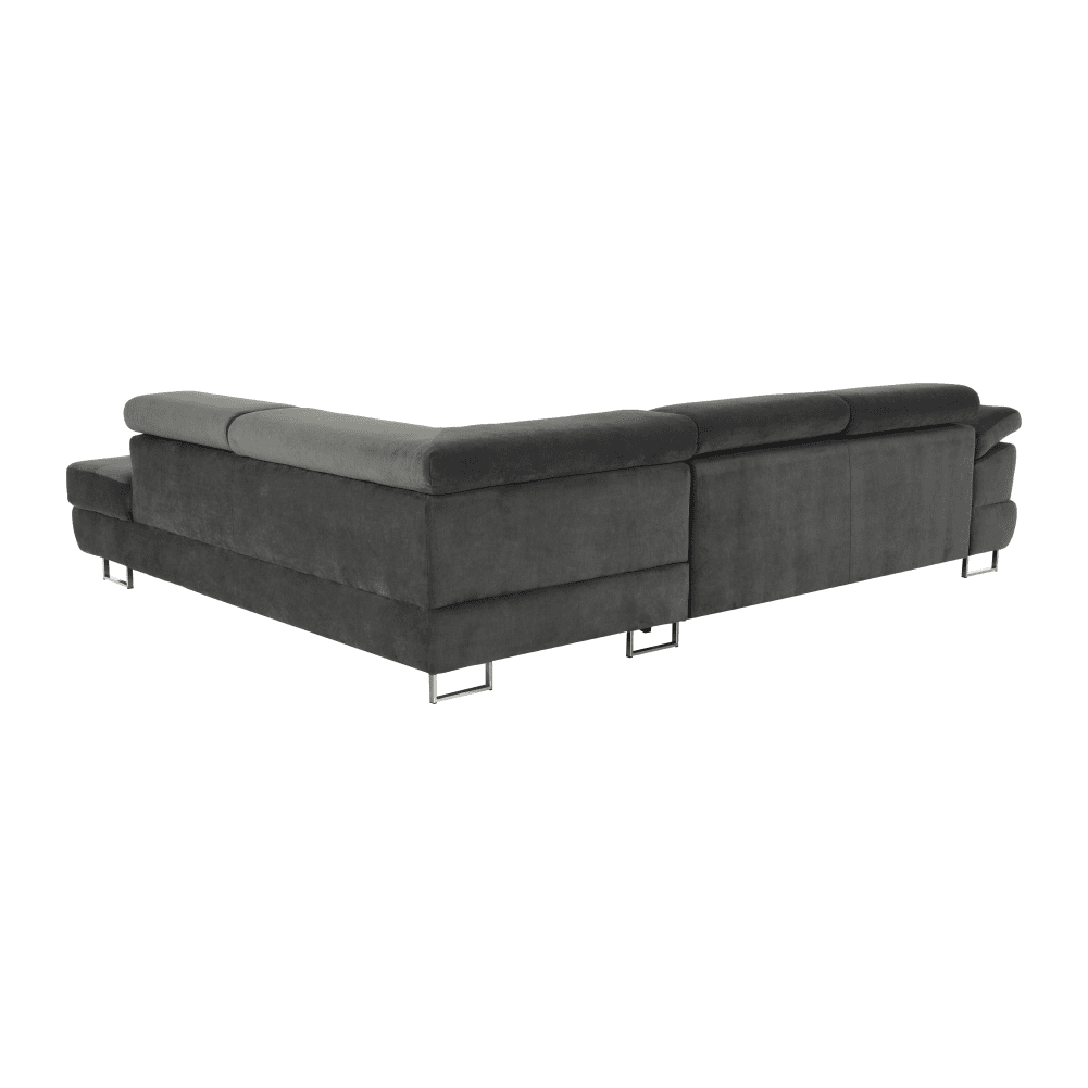 Material: ţesătură Soro 97 Rezistenţa la frecare a ţesăturii conform testului Martindale: 90.000 – 100.000 de cicluri Culoare: gri Dimensiuni (LxAxÎ): 275x225x71/85 cm. Înălţime scaun: 40 cm Adâncime scaun: 59 cm Înălţimea compartimentului inferior de la podea: 9 cm Înălţime spătar: 32/50 cm Adâncime spătar în poziţie înclinată: 41 cm Cotieră (AxÎ): 105×62/69 cm Suprafaţa de dormit: 125x200cm Lăţime otoman: 104 cm Capacitate de încărcare: 90 kg Colţar, Extensibilă, Cu spaţiu de depozitare, Cusături decorative, Spătar interesant, 3 tetiere ajustabile, 5 grade de poziţionare a tetierelor, Tapiţată integral, Umplutură: arcuri, Picioare metalice cu finisaj cromat, Variantă pentru partea stânga, Setul nu include perne decorative, Livrată dezasamblată, Vă oferim posibilitatea de a alege dintre 7 nuanţe de culoare ale ţesăturii Soro, conform catalogului de mostre.