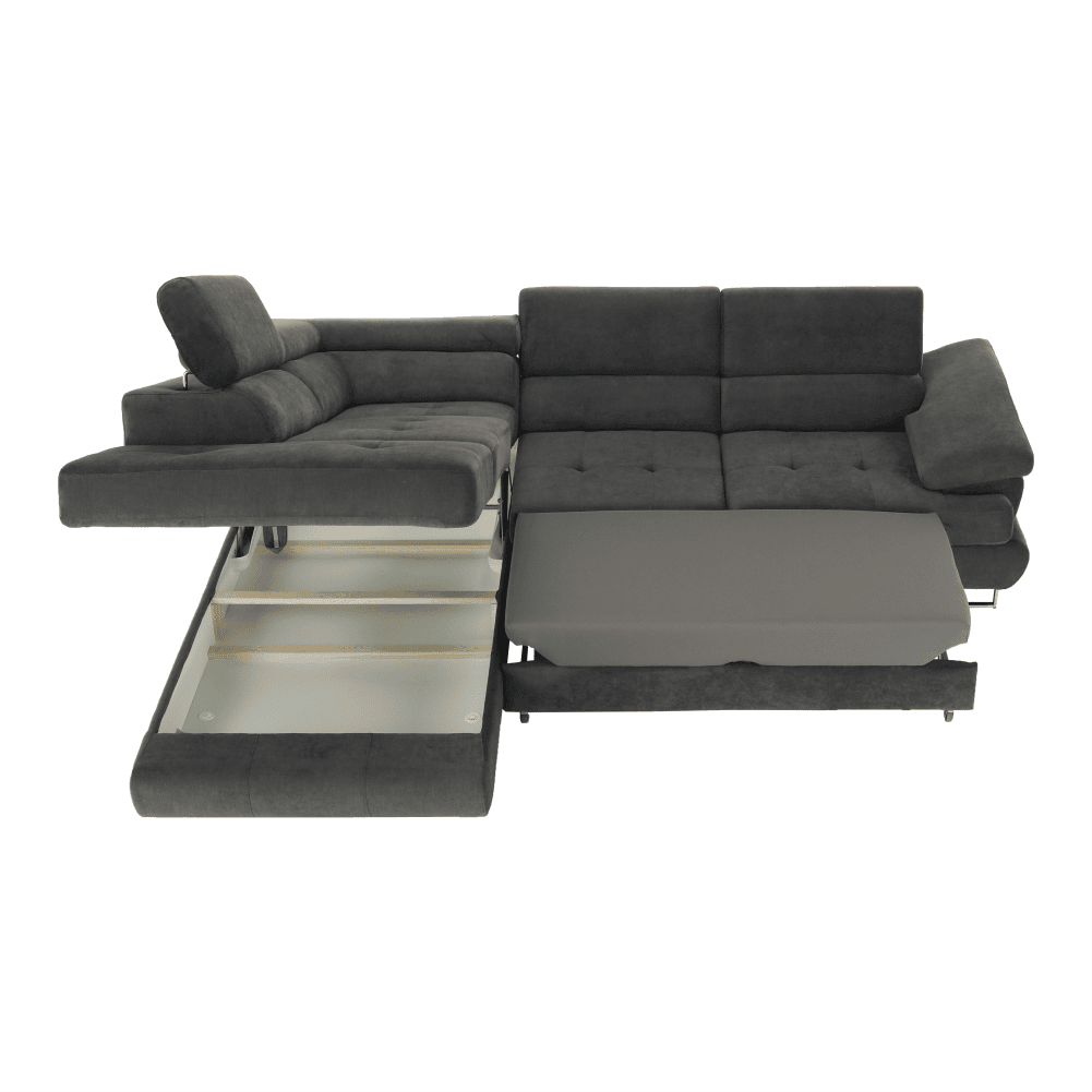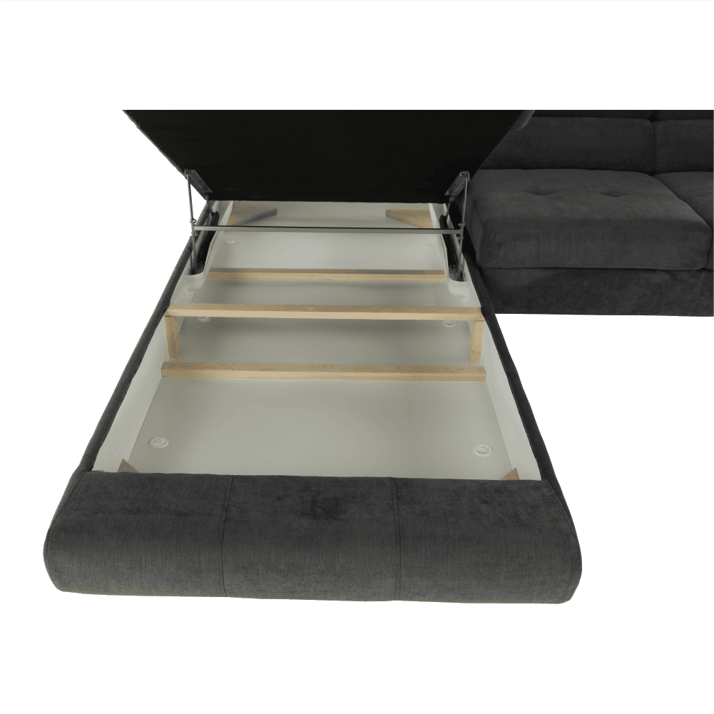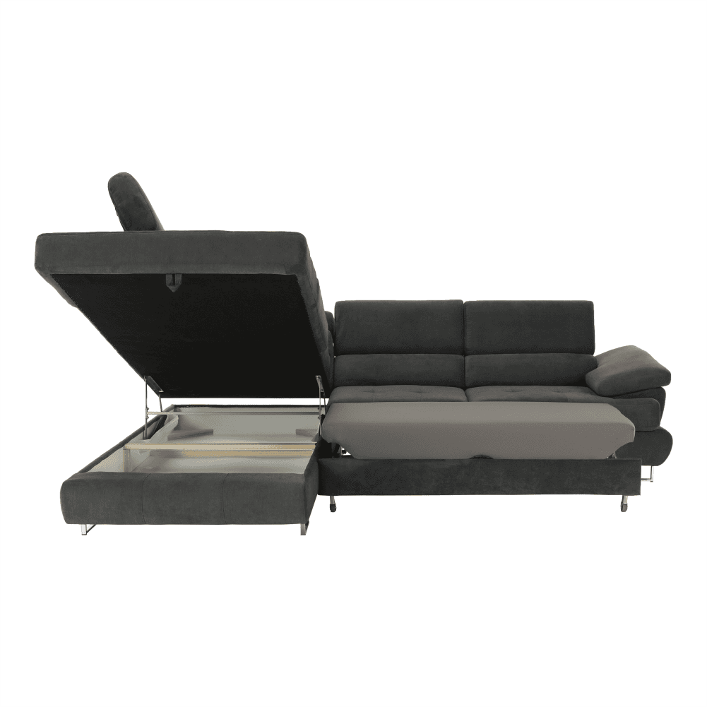 Set canapea cu spaţiu de depozitare, gri, material textil, stânga, BUTON R