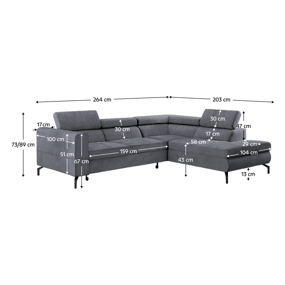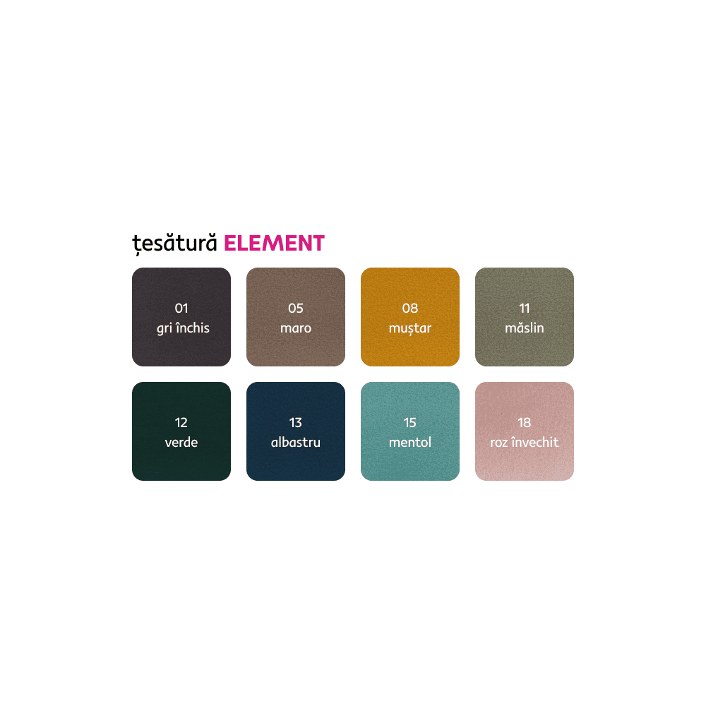 Material tapiţerie: ţesătură Element 23 Rezistenţa la frecare a ţesăturii conform testului Martindale: 50.000 Culoare tapiţerie: gri Dimensiuni (LxAxÎ): 264x203x73/89 cm Suprafaţa pentru dormit (LxL): 125×195 cm Înălţime scaun: 43 cm Adâncime scaun: 58 cm Lăţime scaun: 159 cm Dimensiuni cotieră (LxAxÎ): 17x100x51 cm Înălţimea compartimentului inferior de la podea: 13 cm Înălţime spătar: 30 cm Cu picioare Material picioare: metal Culoare picioare: neagră Umplutura: arcuri ondulate + spumă poliuretanică Extensibilă Colţar Tapiţată integral, Variantă pentru partea dreaptă Cu spaţiu de depozitare 3 tetiere ajustabile 5 grade de înclinare a tetierelor Livrată dezasamblată, Posibilitatea de a alege dintre 8 nuanţe ale ţesăturii Element la preţul de 7 115 Lei cu termenul de livrare de 6 – 8 săptămâni. Pentru comenzi personalizate este necesară plata unui avans de 20% din suma totală. După achitarea avansului, comanda dumneavoastră va intra în producţie.