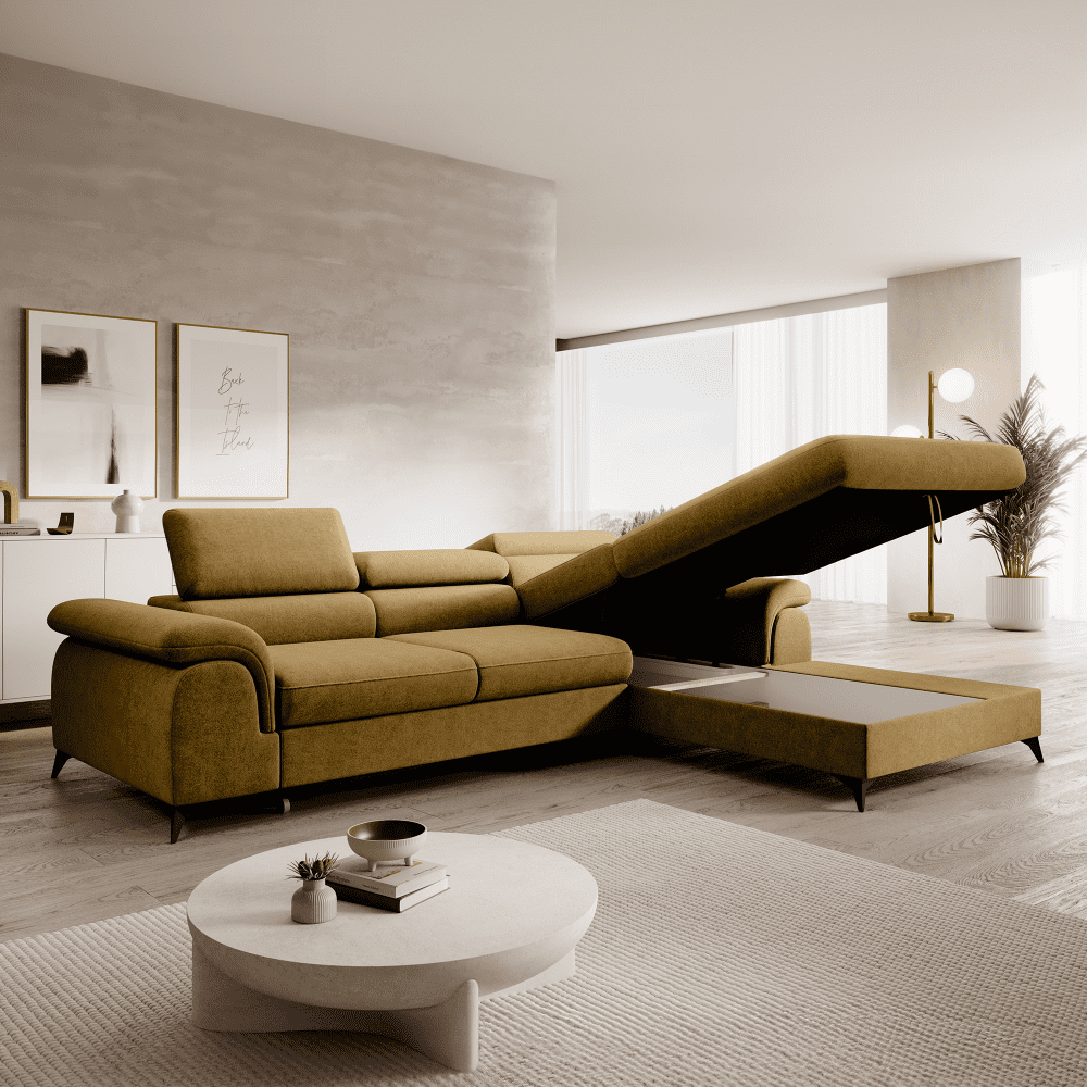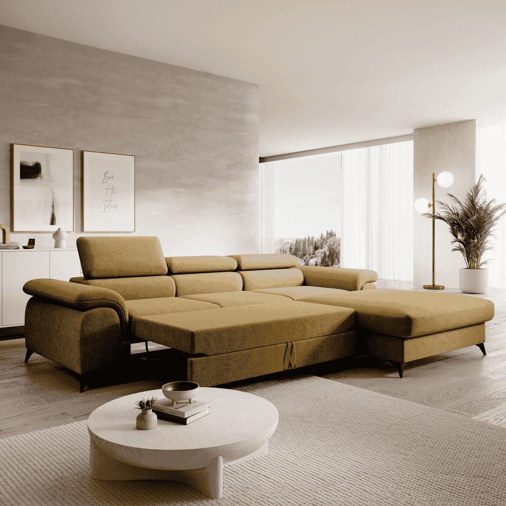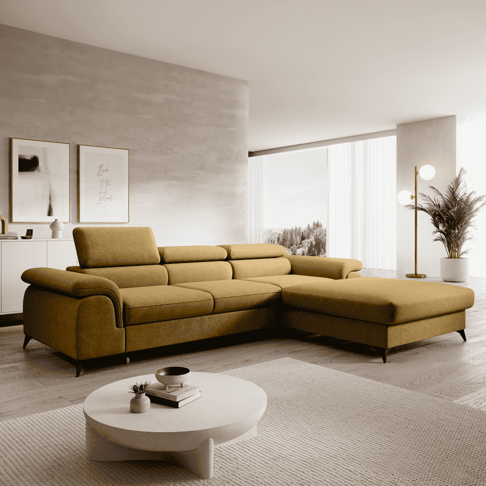 Set canapea extensibilă HORTY ROH, dreapta, în culoarea muştarului