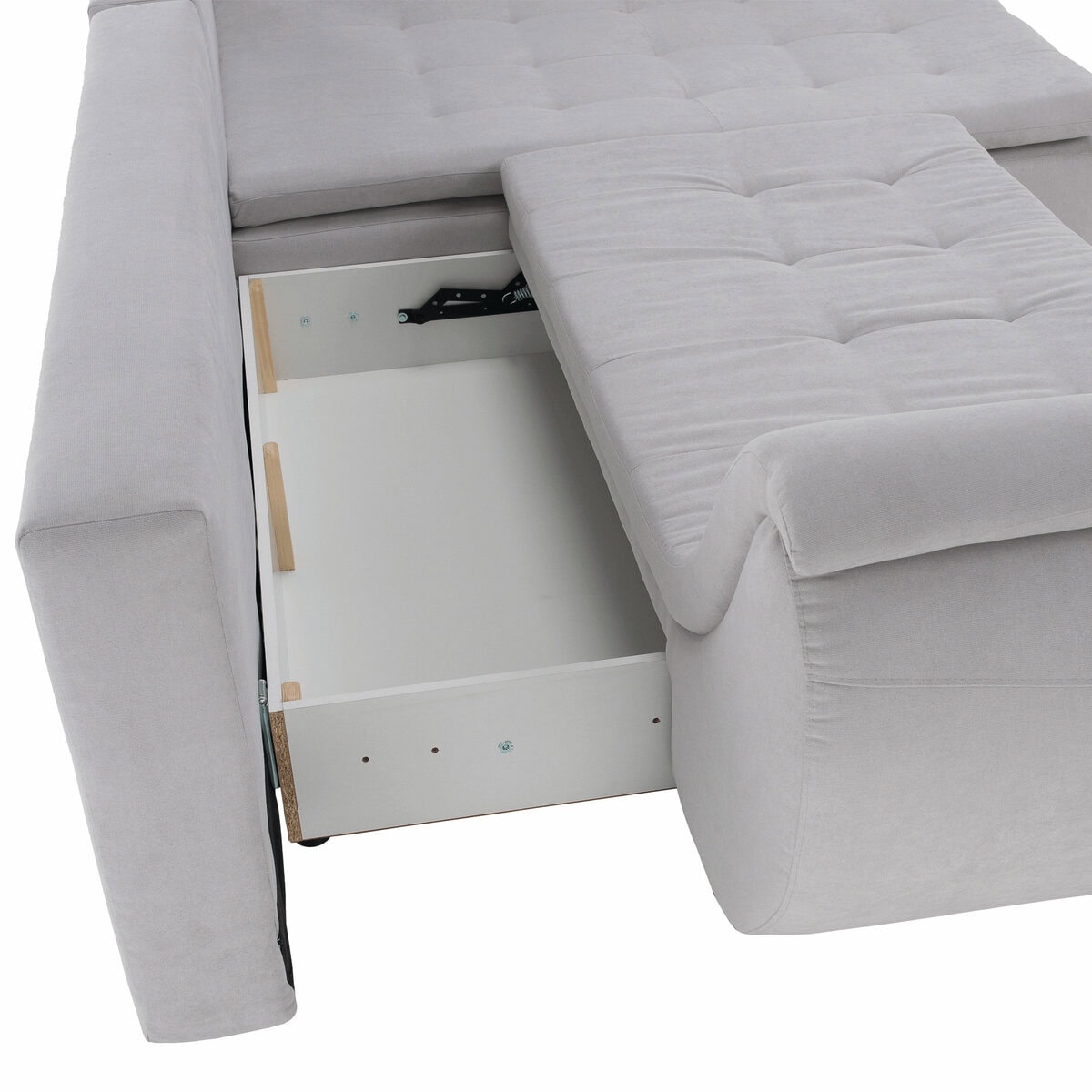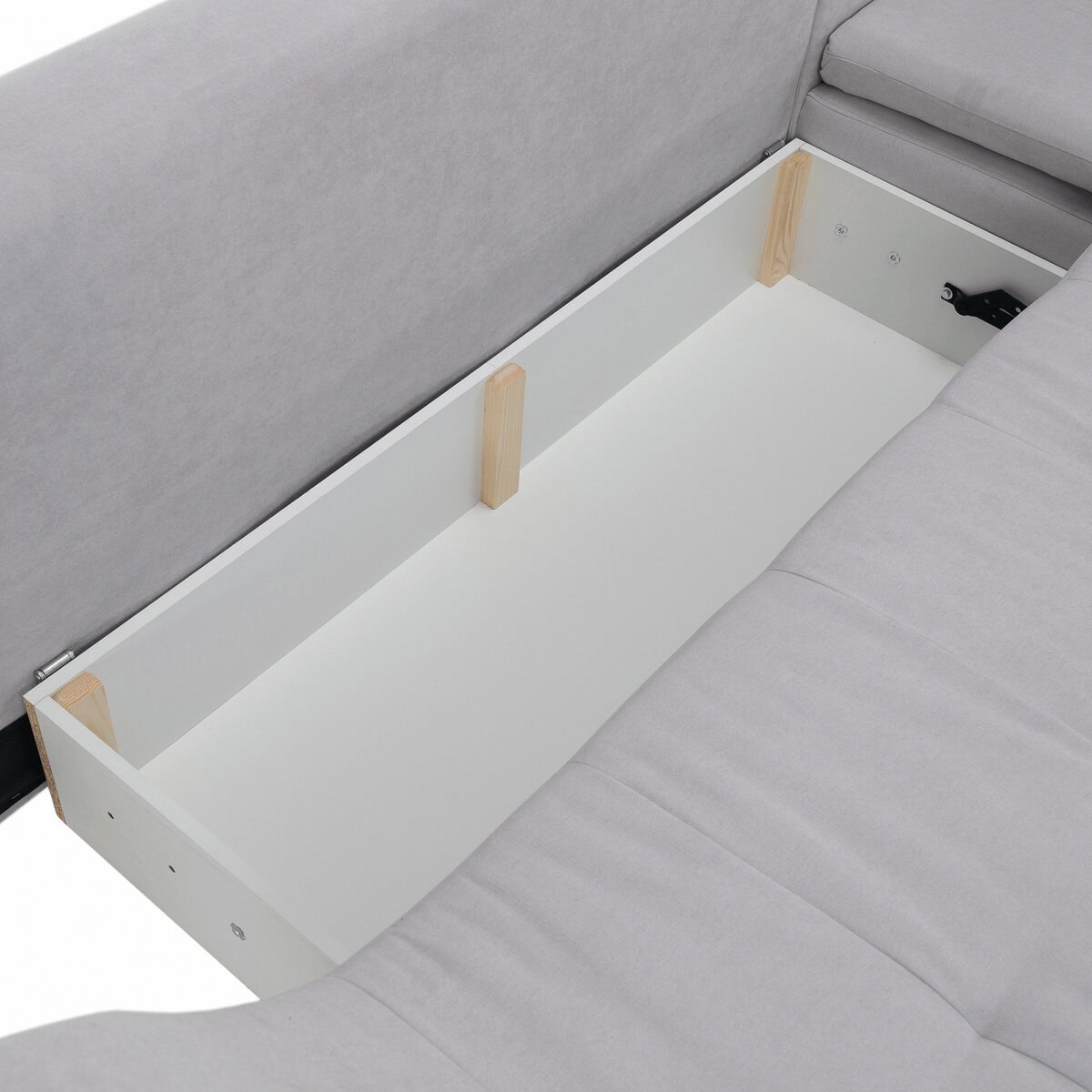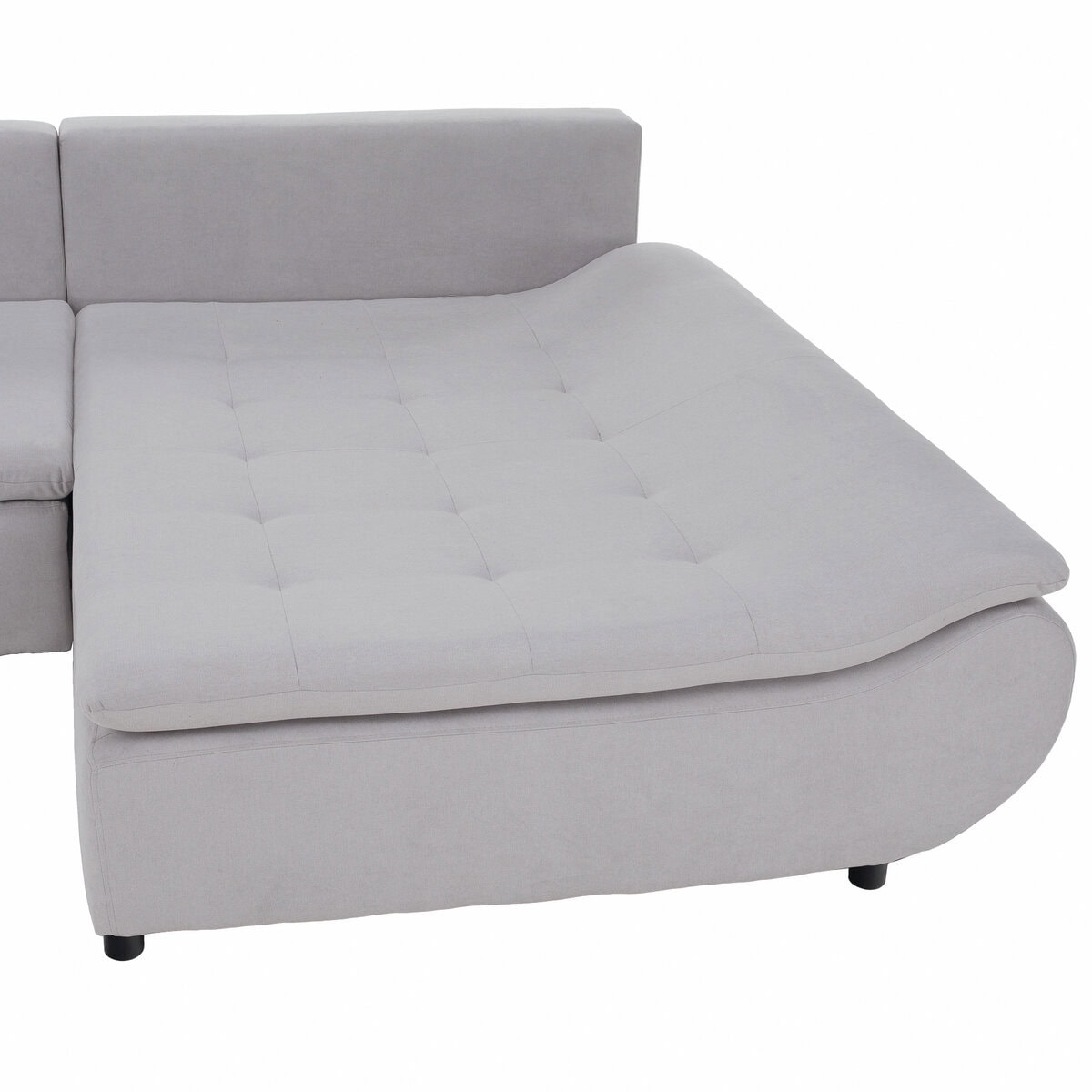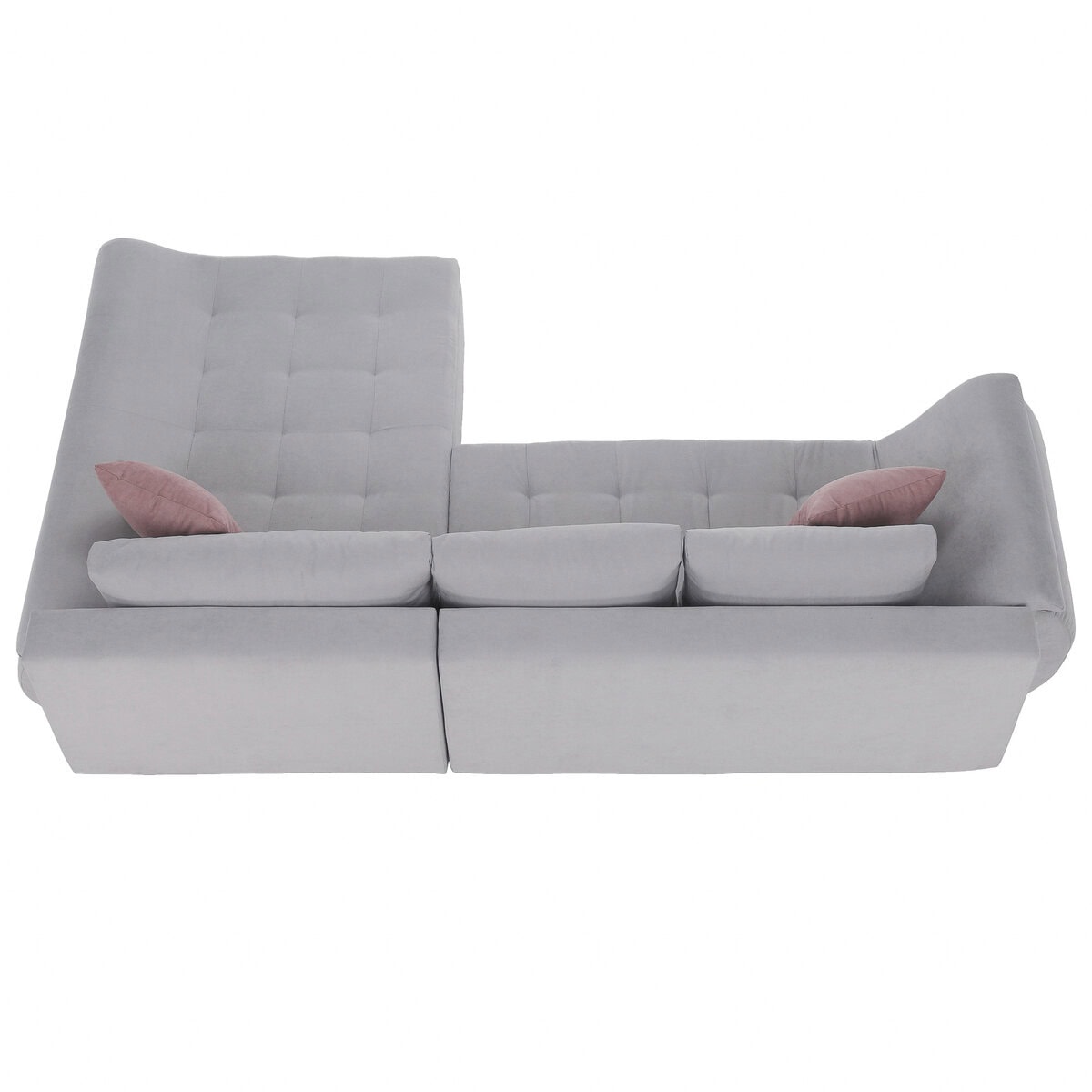 Material: ţesătură Soro 83/61 Rezistenţa ţesăturii conform testului Martindale: 90 000 – 100 000 de cicluri de frecare Culoare: gri deschis / roz pudră Dimensiuni (LxAxÎ): 310x185x72 cm Înălţime scaun: 37 cm Adâncimea scaunului cu perne: 55 cm Adâncimea scaunului fără perne: 83 cm Suprafaţa extensibilă pentru dormit (LxL): 135×240 cm Înălţimea spaţiului inferior de la podea: 5 cm Capacitate de încărcare: 90 kg Umplutura modulului pentru şezut: arcuri ondulate / spumă poliuretanică Variantă pentru partea dreaptă Tapiţată integral Cu spaţiu de depozitare Trei perne incluse în set Perne decorative incluse Livrată dezasamblată