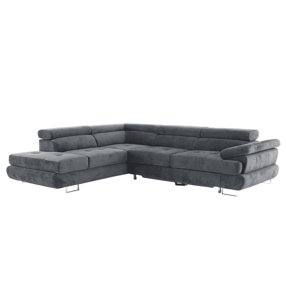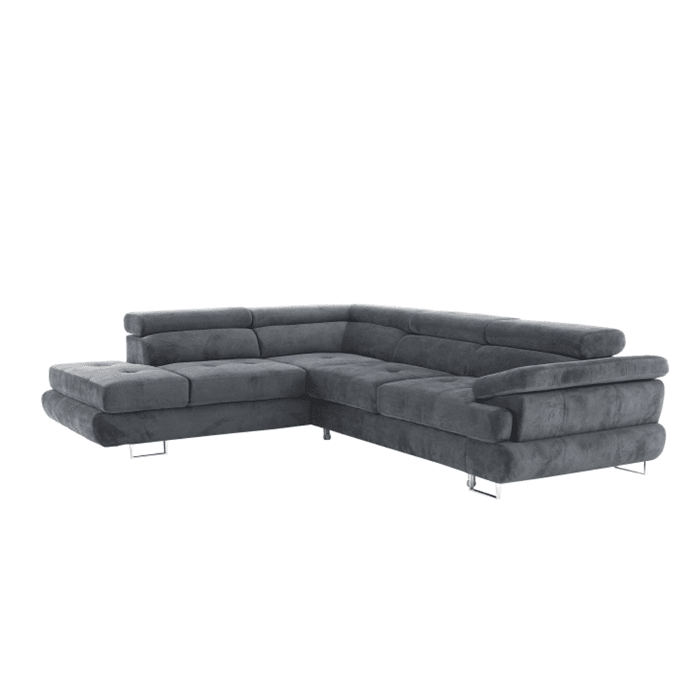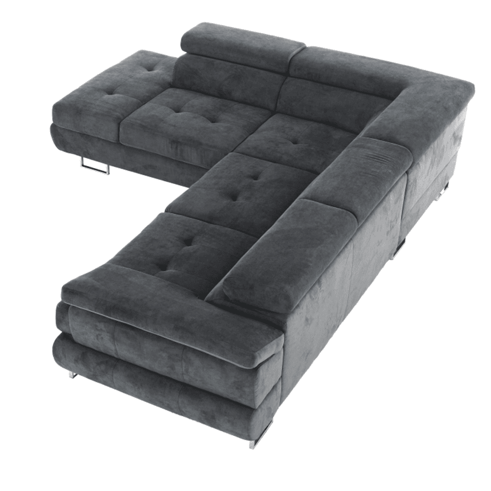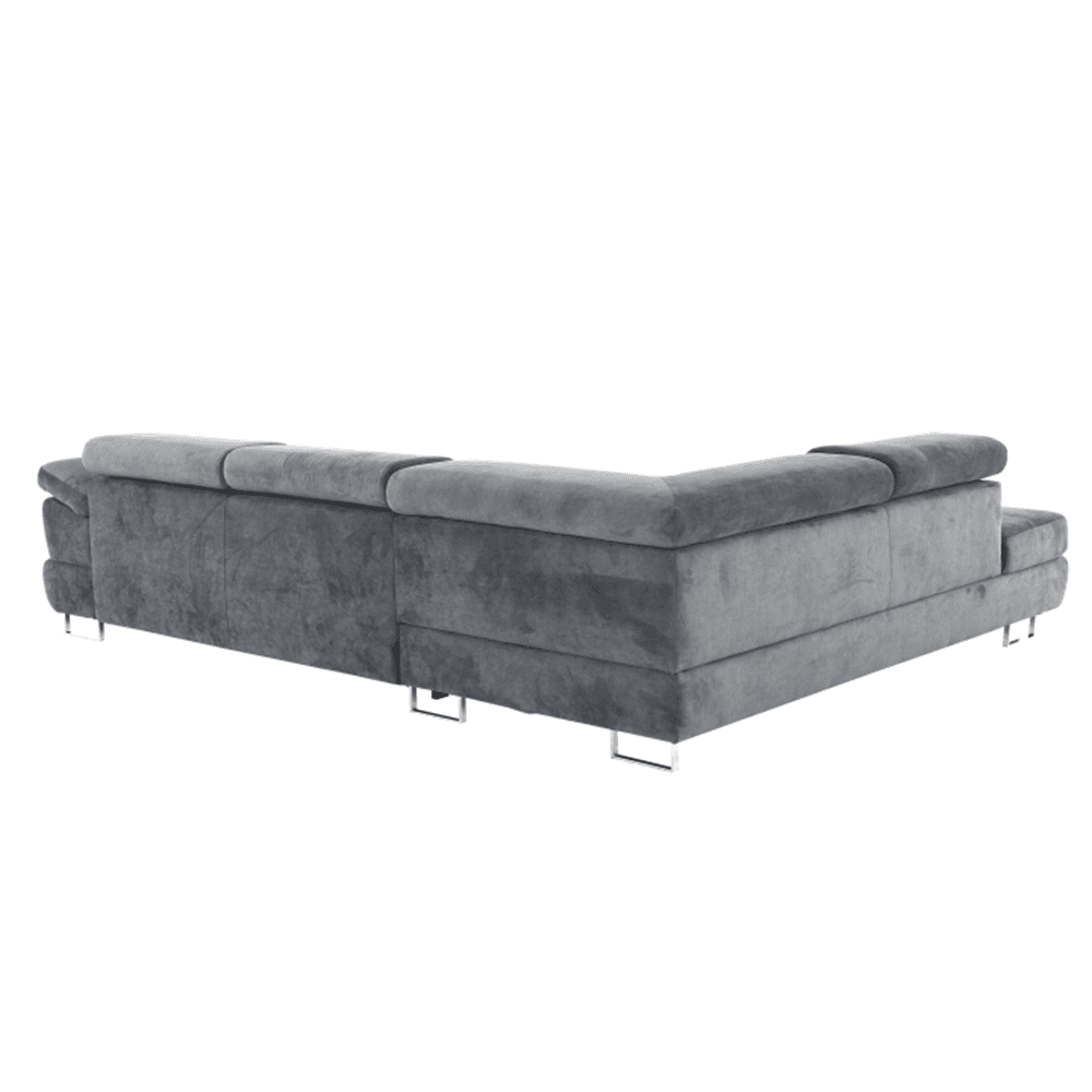 Material: ţesătură Soro 97 Rezistenţa la frecare a ţesăturii conform testului Martindale: 90.000 – 100.000 de cicluri Culoare: gri Dimensiuni (LxAxÎ): 275x225x71/85 cm. Înălţime scaun: 40 cm Adâncime scaun: 59 cm Înălţimea compartimentului inferior de la podea: 9 cm Înălţime spătar: 32/50 cm Adâncime spătar în poziţie înclinată: 41 cm Cotieră (AxÎ): 105×62/69 cm Lăţime otoman: 104 cm Capacitate de încărcare: 90 kg Colţar, Cusături decorative, Spătar interesant, 3 tetiere ajustabile, 5 grade de poziţionare a tetierelor, Tapiţată integral, Umplutură: arcuri, Variantă pentru partea stânga, Setul nu include perne decorative, Livrată dezasamblată,