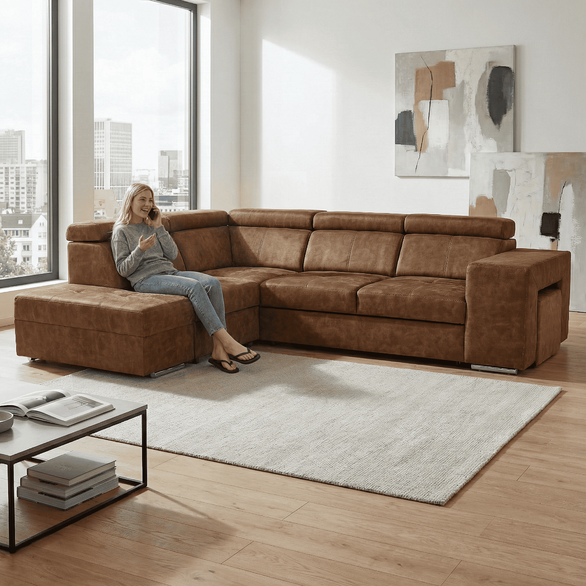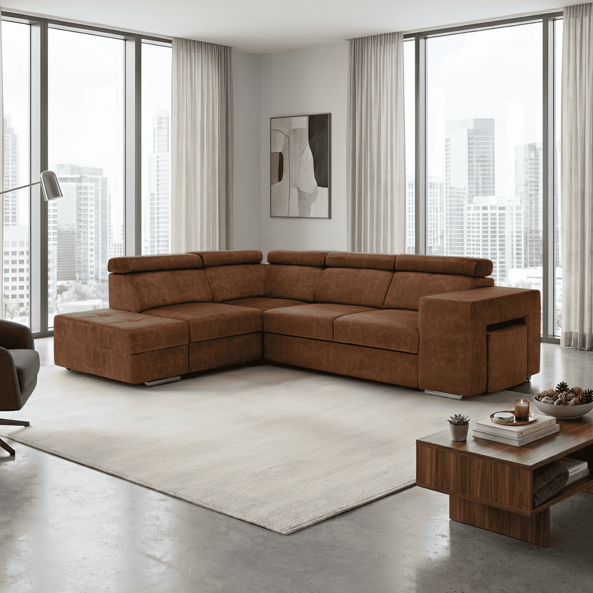 Material tapiţerie: ţesătură Country 8 Rezistenţa ţesăturii la frecare conform testului Martindale: 65 000 cicluri de frecare Culoare: maro Material de construcţie: lemn de pin/lemn de fag/placă laminată Dimensiuni (lxAxh): 264x210x79/97 cm Suprafaţa pentru dormit (lxL): 130×190 cm Înălţime părţii de şezut: 43 cm Adâncimea părţii de şezut: 56 cm Dimensiuni otoman (lxA): 97×165 cm Dimensiuni cotieră (lxAxh): 30x97x58 cm Cu scaun Dimensiunile taburetului (lxAxh): 40x33x48 cm Complet tapiţată Extensibilă De colţ Cu spaţiu de depozitare Varianta pe dreapta Pe picioare Material picioare: metal Culoarea picioarelor: crom Înălţimea spaţiului inferior faţă de podea: 4,5 cm Tetiere poziţionabile Poziţionare 5 grade a tetierelor Umplere: arc falista/spumă pur/molitan Livrat dezasamblat Posibilitatea de a comanda în 8 nuanţe de culoare din ţesătură Country la preţul de 7 605 Lei cu un timp de livrare de 6-8 săptămâni. Pentru comenzi personalizate este necesară plata unui avans de 20% din suma respectivă. După achitarea avansului, solicitarea dumneavoastră va intra în producţie.