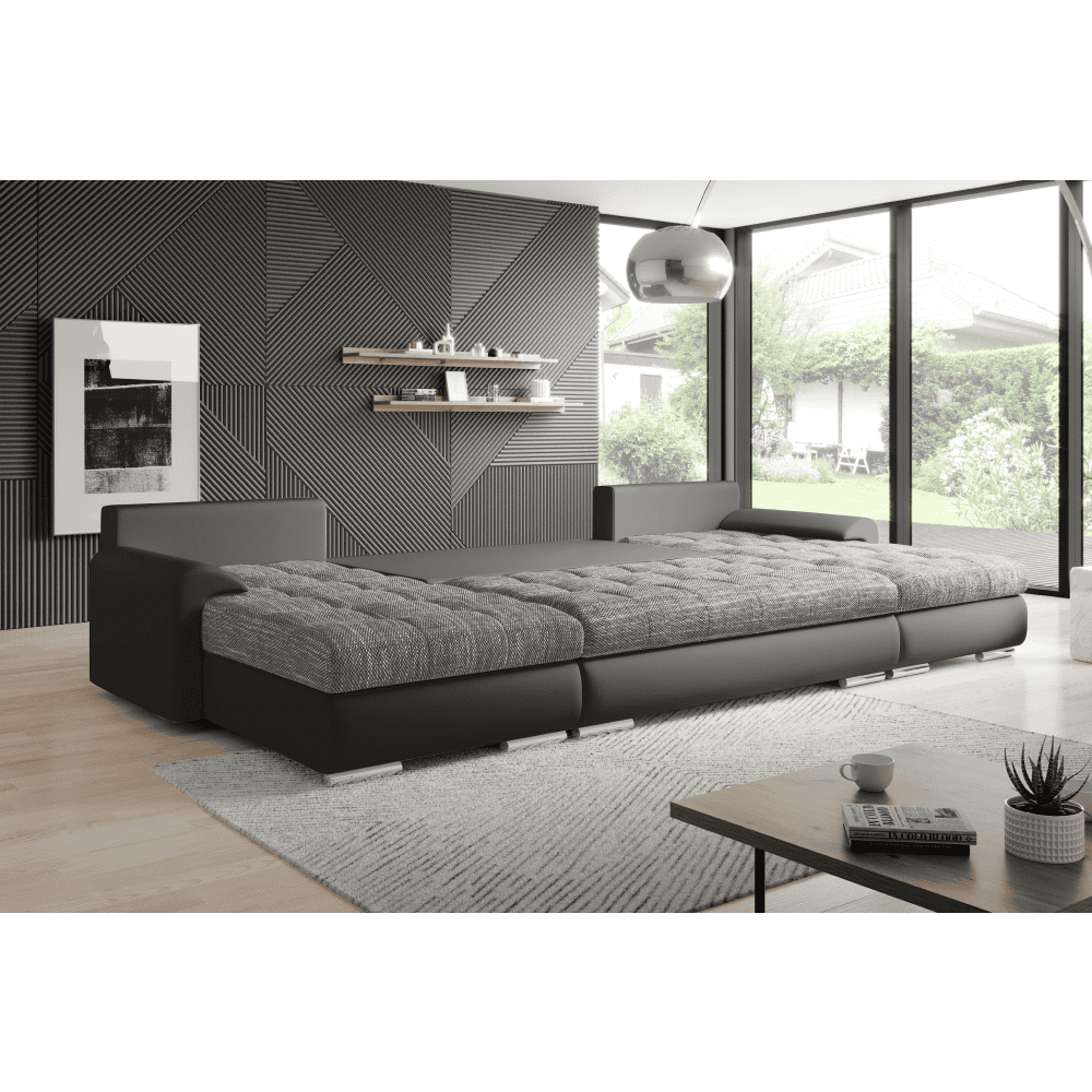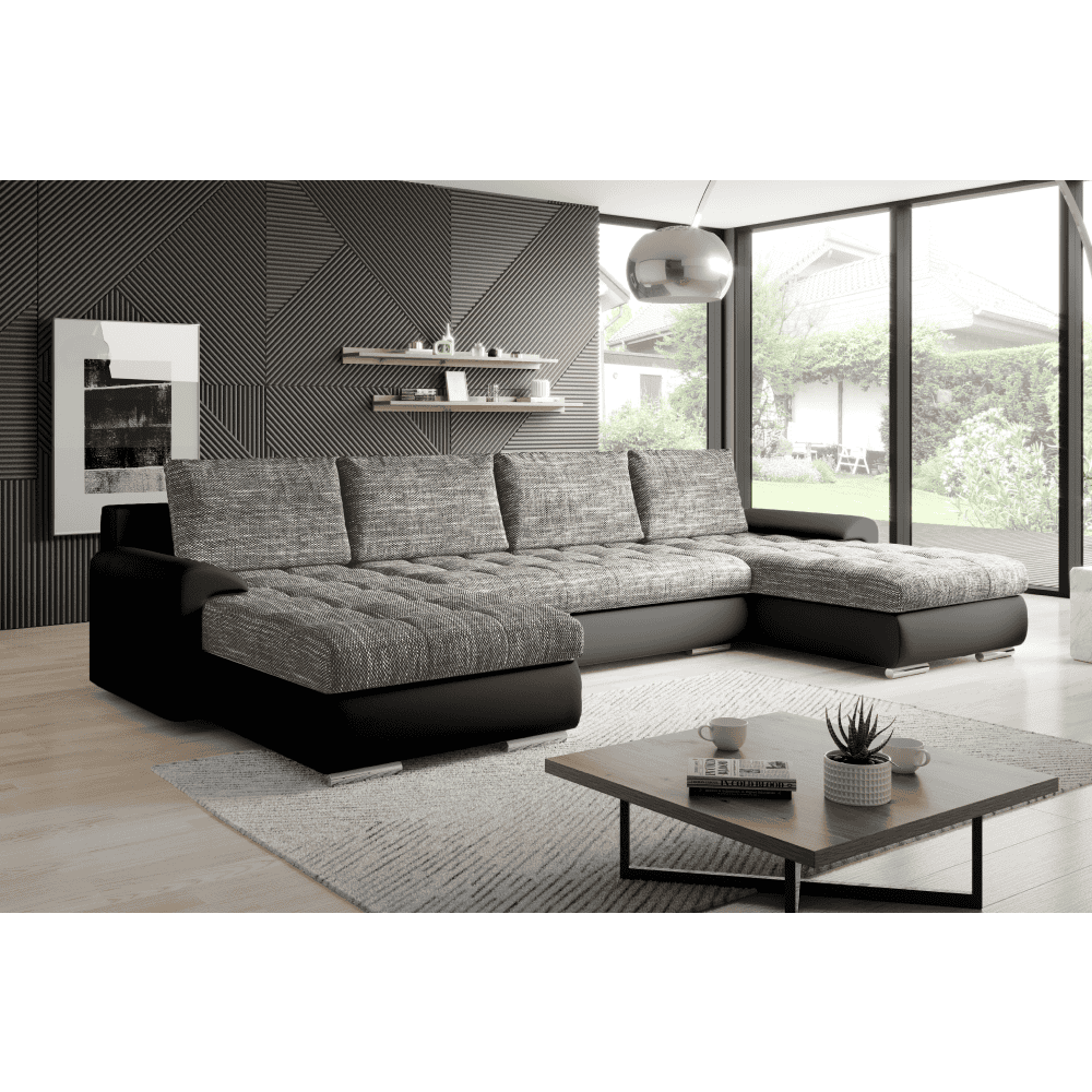 Set canapea universal, piele ecologică negru/melir gri, TOLITA U UNI