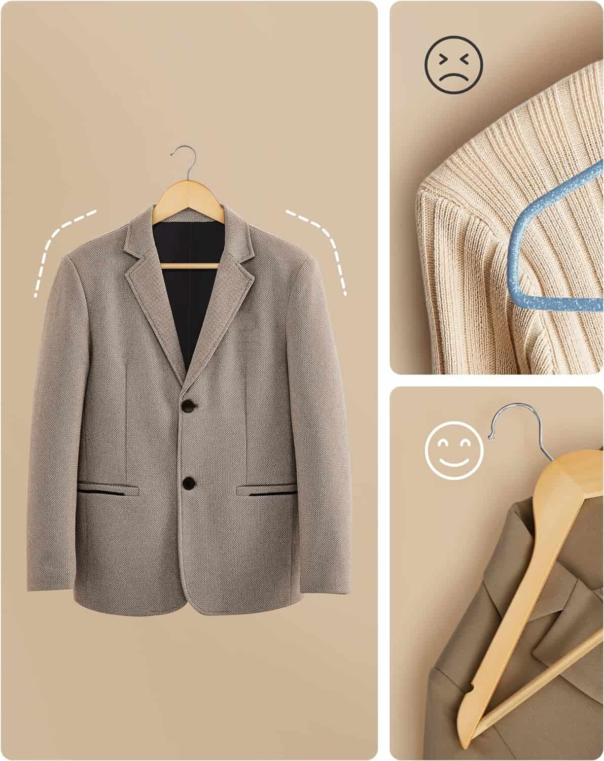 Specificatii: Culoare: Natural Material: Lemn de artar, carlig metalic Dimensiunile fiecarui cuier: 44,5 x 1,2 x 23 cm (L x l x i) Greutatea celor 10 umerase in total: 1,2 kg Capacitatea de incarcare statica a fiecarui cuier: 5 kg Despre acest articol Aceste umerase elegante din lemn masiv au o suprafata neteda, lustruita manual, care nu va va deteriora hainele, pastrandu-le in cea mai buna forma.Confectionate din lemn de artar de inalta calitate, aceste umerase sunt puternice si durabile si pot agata haine din toate anotimpurile, inclusiv jachete sau paltoane de iarna care cantaresc pana la 5 kg.Aceste umerase din lemn sunt curbate pentru a imita umerii dvs. si au grija de hainele dvs. delicate.Carligele metalice de inalta calitate de pe aceste umerase se rotesc la 360 °, astfel incat, chiar daca va agatati din greseala hainele in directia gresita, acestea pot fi schimbate cu usurinta.Fantele antiderapante in forma de U si o bara antiderapanta pentru pantaloni impiedica alunecarea hainelor si a pantalonilor; de asemenea, puteti face din umeras un cadou unic pentru familie si prieteni.