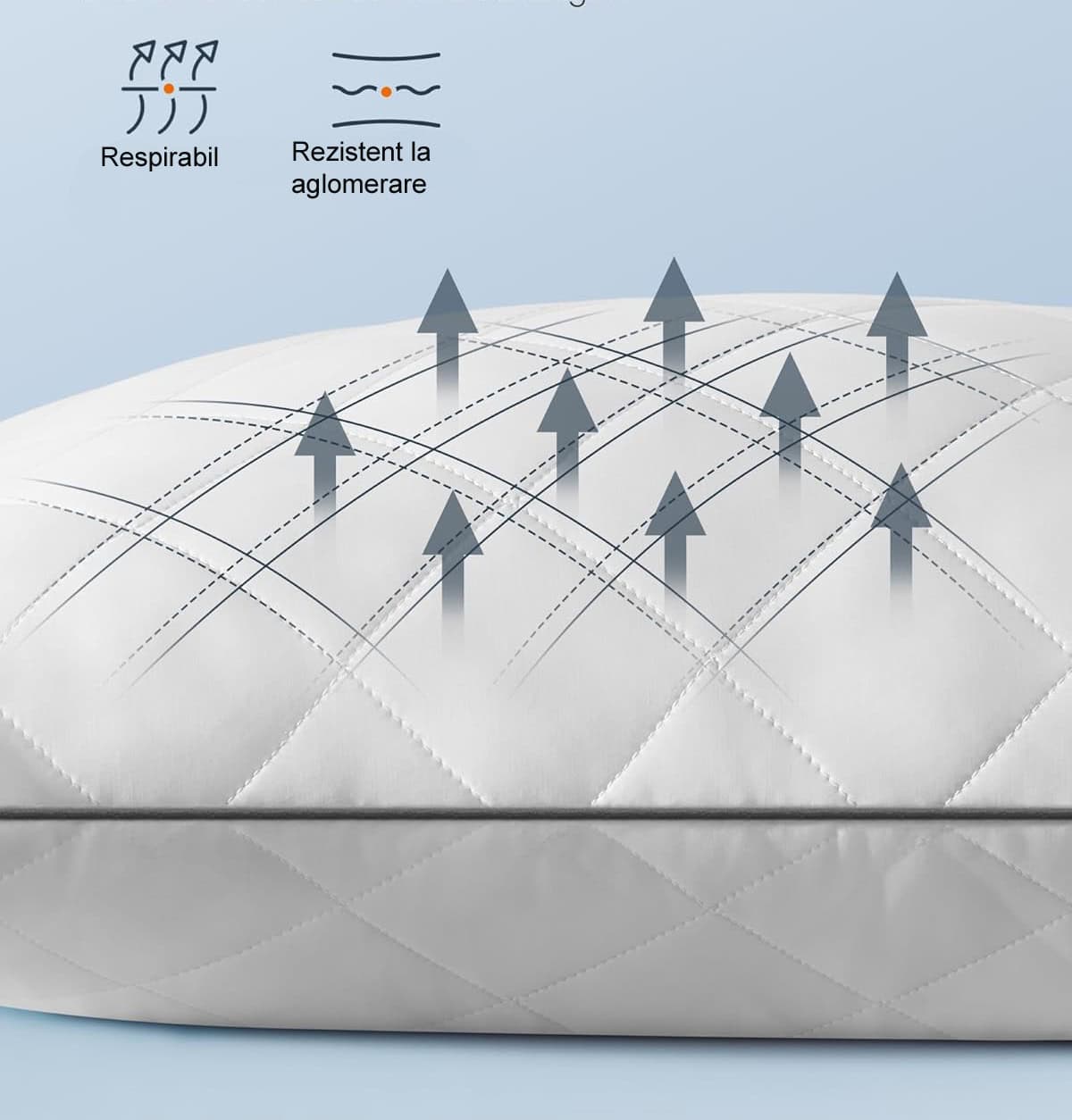 Detalii despre produs: Culoare: Gri Material: tesatura din amestec de poliamida, 110 g/m² tesatura din poliester periat, fibra de poliester 3D, fibra de poliester 7D Dimensiuni: 80 x 80 cm (L x l) Note: Masurat intins, este posibila o abatere de dimensiune de 2-3 cm. Se spala la masina pana la 60° C si se usuca cu tambur. Scuturati dupa curatare pentru a-si reda forma. Ambalata in vid. Scuturati si lasati sa se odihneasca timp de 48 de ore pentru a mentine loftul complet. Spalarea sau uscarea cu tambur indeparteaza pliurile. Deschideti ambalajul cu grija pentru a nu deteriora tesatura. Evitati zgarierea suprafetei cu obiecte dure sau ascutite. Potrivit numai pentru dormitor. Despre acest articol Doua fete pentru confort pe tot parcursul anului: O parte din tesatura rece (Q-Max ≈ 0,43) impotriva caldurii de vara, cealalta parte din poliester cald protejeaza impotriva frigului de iarna. Cu perna cu doua fete, va puteti bucura de un somn bun pe tot parcursul anului. Scufundati-va in moliciune: Bine umpluta cu fibre de poliester de inalta calitate de 1200 g, aceasta perna va acopera in cea mai mare moliciune. Este inodora si flexibila si va permite sa alunecati usor in tara viselor in fiecare noapte. Dormiti mai bine: Husa cu un strat rezistent la transpiratie este respirabila si ramane uscata, astfel incat sa puteti dormi linistit si sa incepeti ziua plin de energie. Acest design previne, de asemenea, aglomerarea pentru o durata lunga de viata. Eleganta de lunga durata: perna noastra cu cusaturi diamantate si margini contrastante, intarite, combina eleganta cu durabilitatea. Grija si maiestria asigura ca perna nu trage de fire. Ingrijire usoara: Aceasta perna de pat este lavabila la masina si poate fi uscata pana la 60°C. Astfel, ramane proaspata si curata, isi pastreaza moliciunea si pufosenia si asigura o ingrijire usoara pentru mai putin stres in viata de zi cu zi.