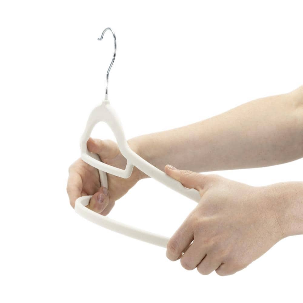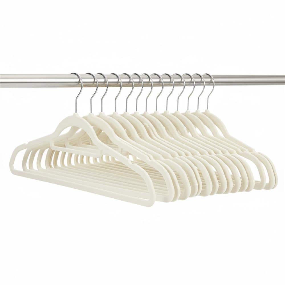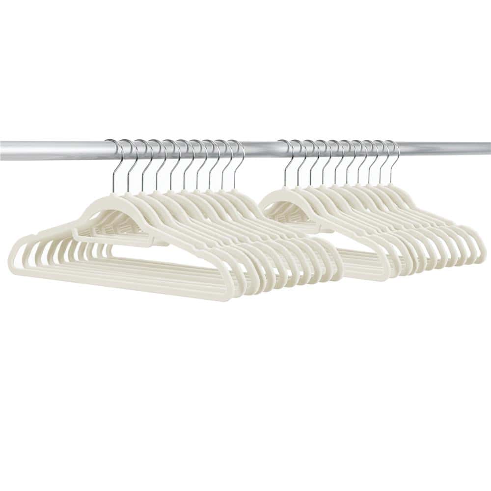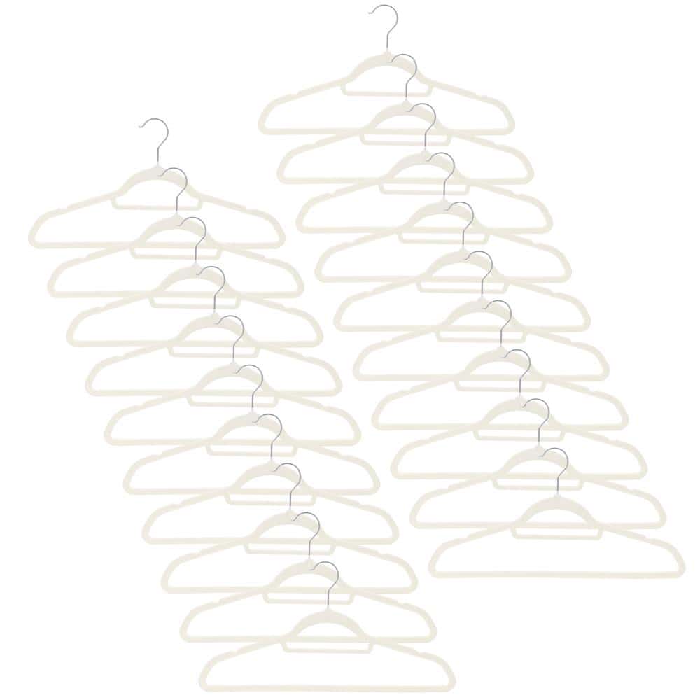 Set de 20 de umerase pentru haine, din velur, cu carlig rotativ, 45×23 cm, ecru Mob360