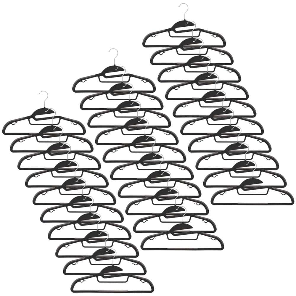 Set de 30 de umerase antiderapante pentru haine, din PE, cu carlig metalic rotativ, 41 cm, negru si gri Mob360 – produs disponibil în magazinul Mob360.