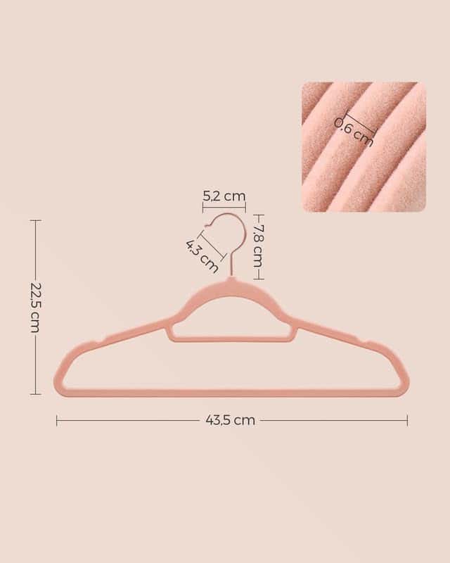 - Catifea, plastic ABS, carlig metalic Dimensiunea fiecarui umeras: 43,5 x 0,6 x 22,5 cm (