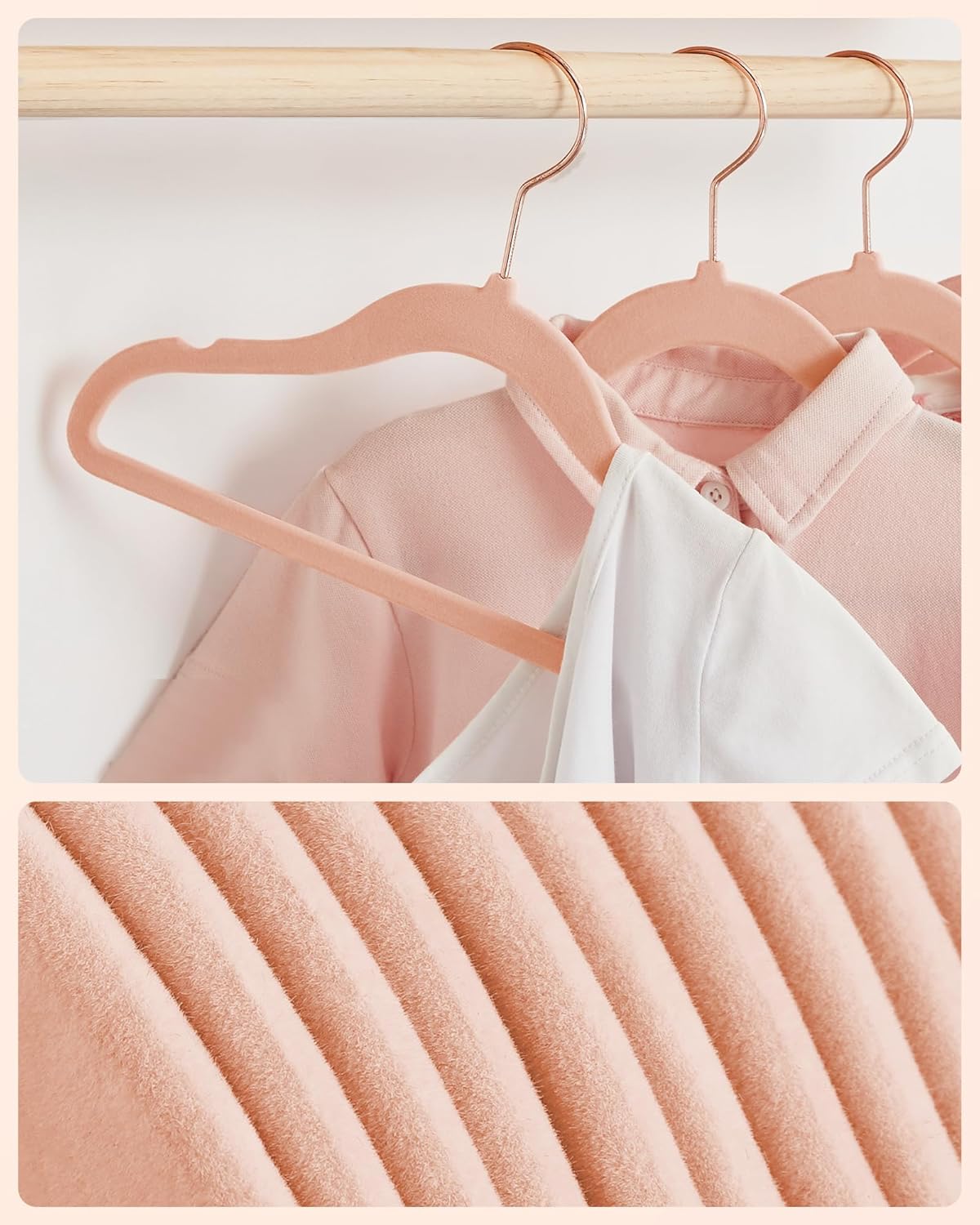 Set de 50 de umerase copii din catifea, antialunecare, carlige rotative 360°, 30 cm, roz Mob360