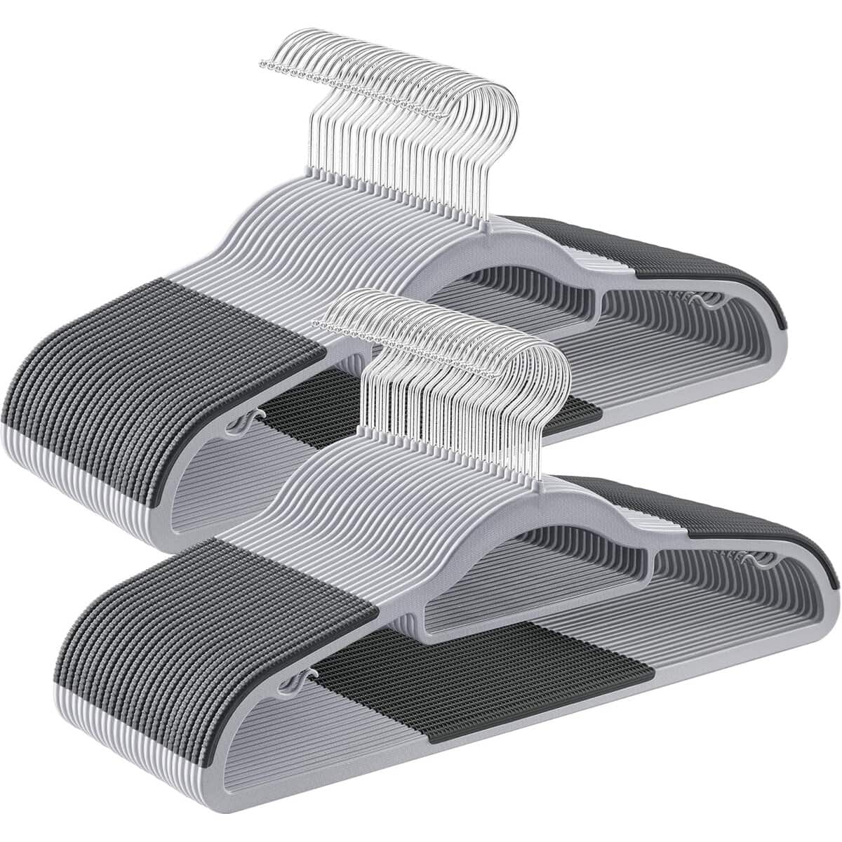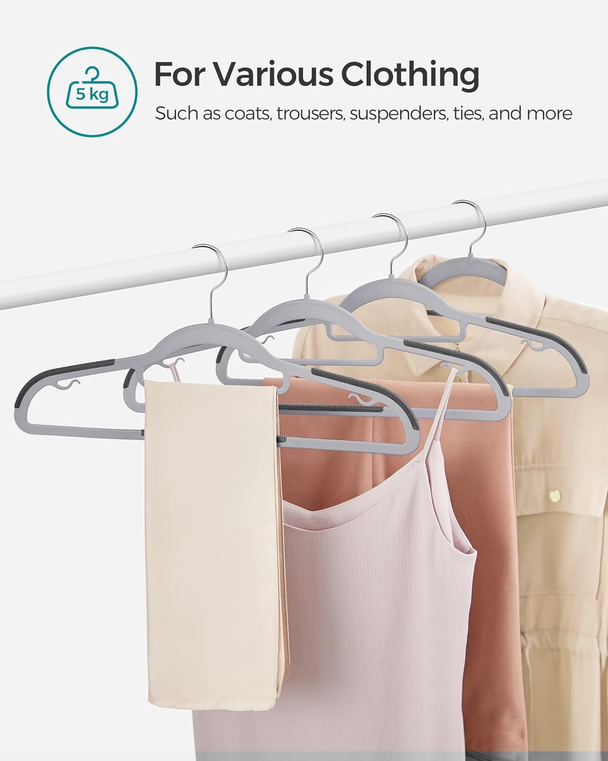 Set de 50 de umerase subtiri din plastic, antialunecare, cu deschidere U, carlige rotative 360°, 42 cm, gri Mob360