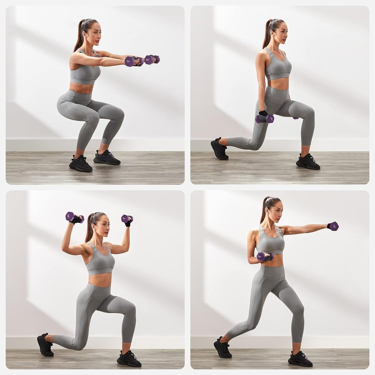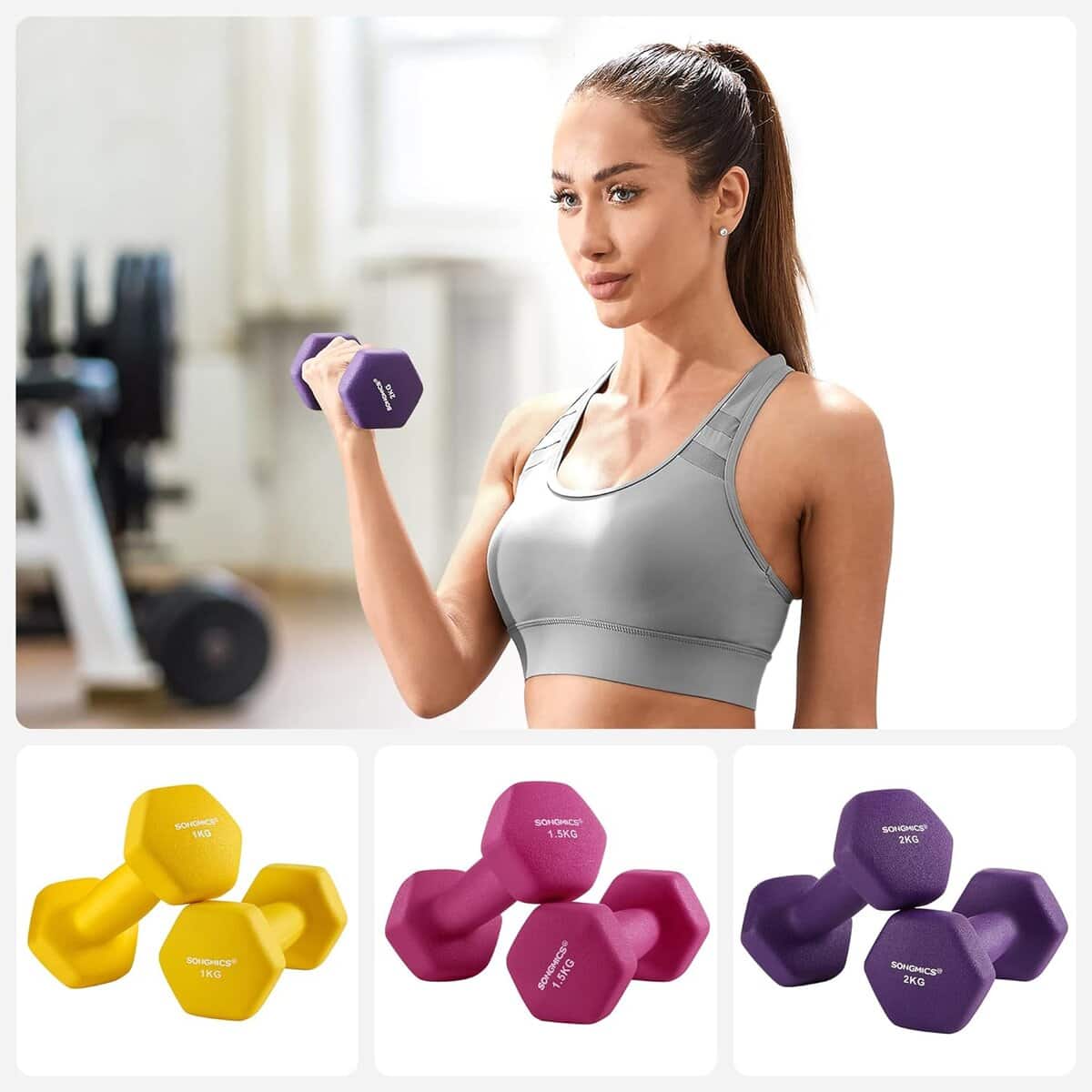 Acest set de gantere colorate este perfect pentru antrenamentul la domiciliu.