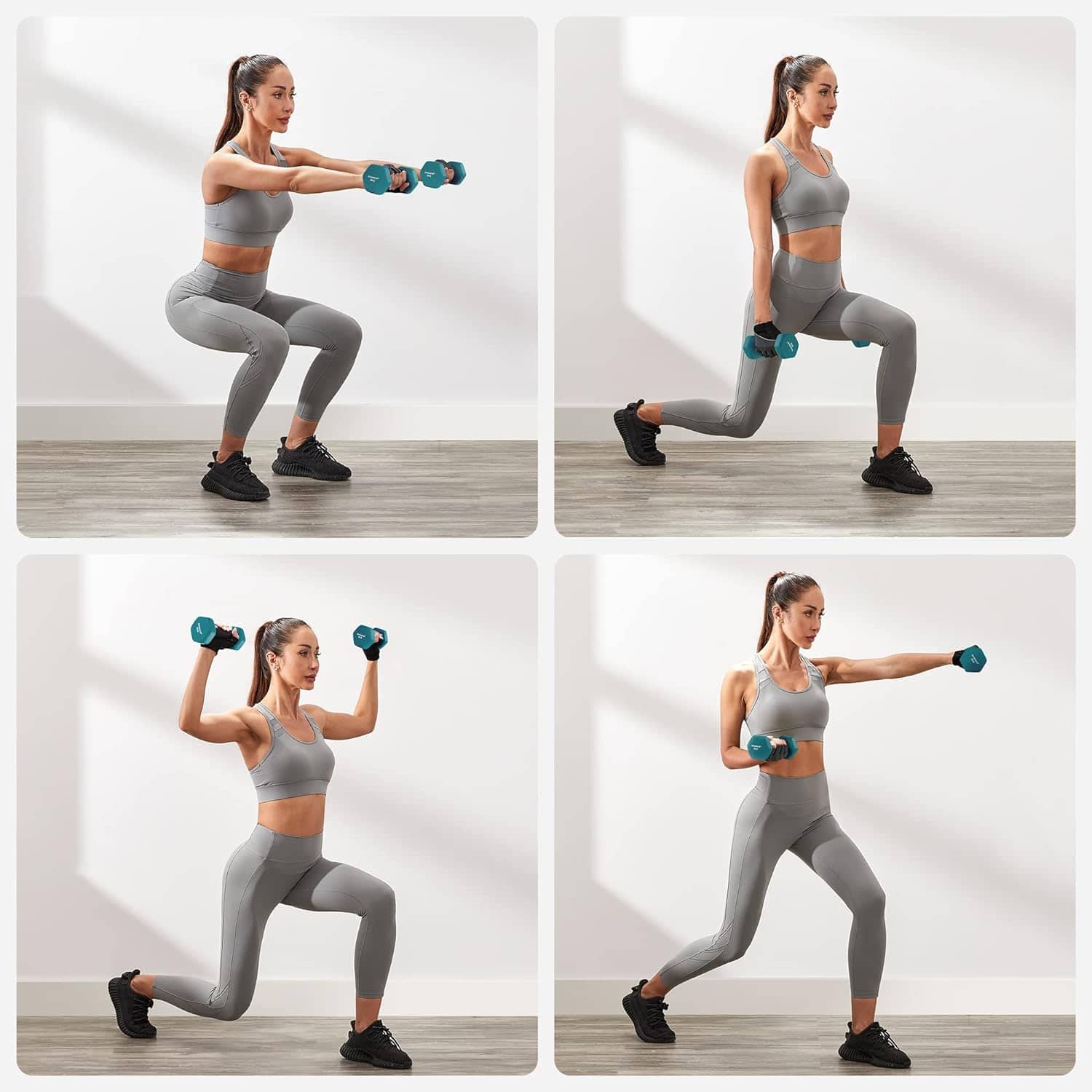 Detalii produs Culoare: Verde lamaie, verde-portocaliu si gri Material: Fonta cu strat de neopren Greutate: 2 x 1 kg, 2 x 2 kg, 2 x 3 kg 1 kg: 13,5 x 6,5 x 6,5 x 6 cm (L x l x i); 9 cm (lungimea manerului) 2 kg: 16 x 8 x 7,5 cm (L x l x ih); 10 cm (lungimea manerului) 3kg: 20 x 9 x 8,5 cm (L x l x ih); 11,5 cm (lungimea manerului) Despre acest articol Nu ai timp sa mergi la sala. Trezeste-ti muschii adormiti in doar 15 minute dupa ce ai lucrat toata ziua la calculator. Acest set de gantere este perfect pentru exercitii de fitness in casa ta!Datorita manerelor cu forma optima, cu un strat de cauciuc moale, aderenta halterelor este crescuta si previne alunecarea, astfel incat chiar si mainile transpirate nu reprezinta o problema in timpul antrenamentului cu haltere. In plus, aceasta husa absoarbe socurile in cazul in care halterele cad pe podea.In plus fata de cele 6 gantere, primiti si un suport compact si solid pentru gantere. Acest set de haltere este, de asemenea, suficient de subtire pentru a se ascunde intr-un colt!Ce veti primi: Un set de 6 gantere – 2 x 1 kg (verde lime), 2 x 2 kg (acvamarin) si 2 x 3 kg (gri), un suport solid pentru gantere.