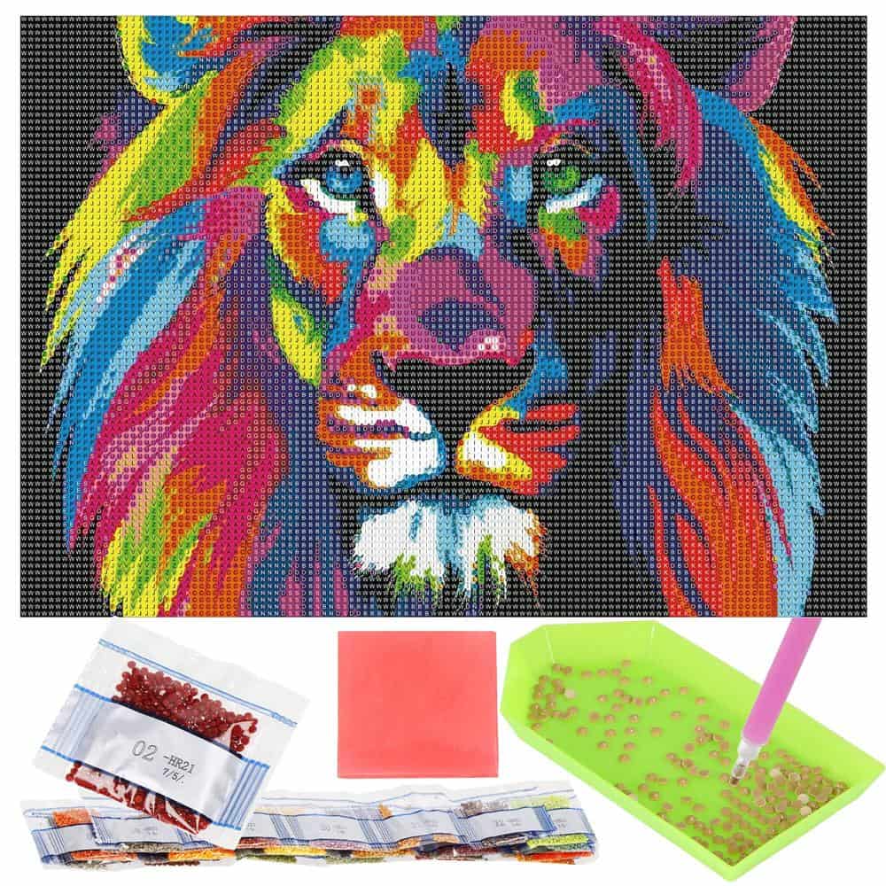 Set de broderie cu diamante 5D, 30x40cm, model Leu Mob360
