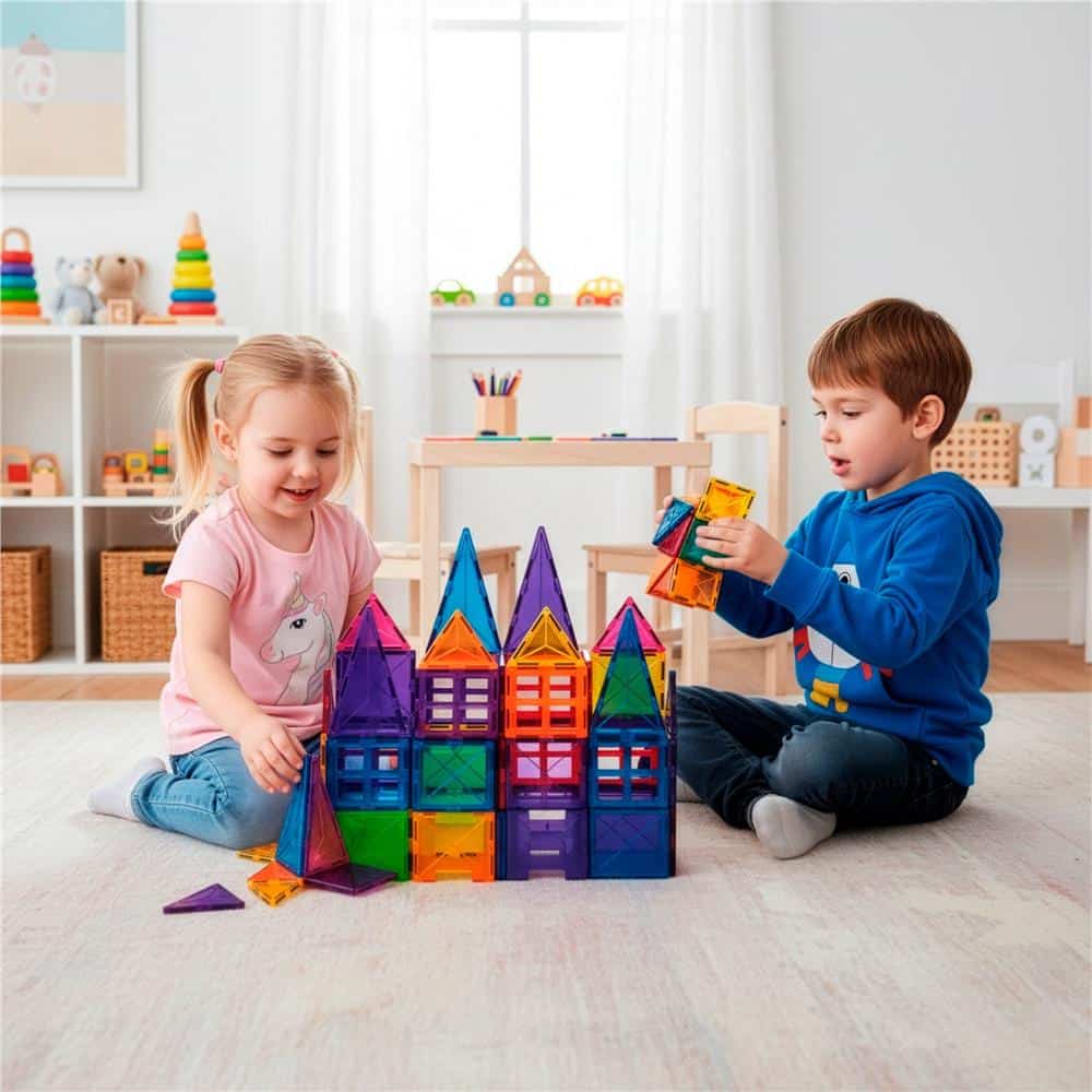 Set de constructie din piese magnetice educative pentru copii 48 de piese, multicolor Mob360